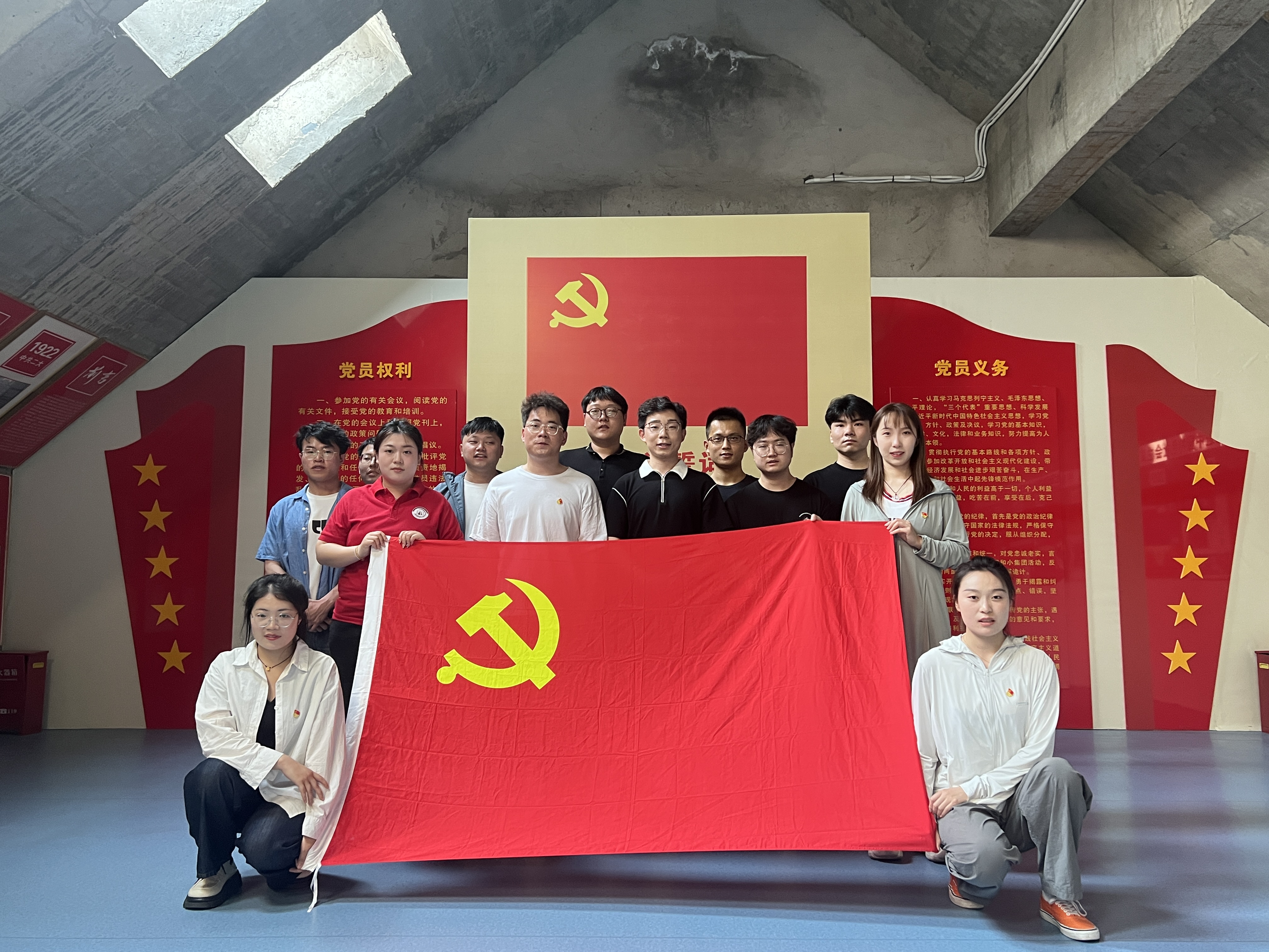 研究生党员梅玉爽作为领誓人,带领党员重温了入党誓词。同学们神情坚定,字字千钧,表达了身为一名共产党员永葆初心使命的坚定信念与决心。最后,队员们在党旗下进行了合影留念。