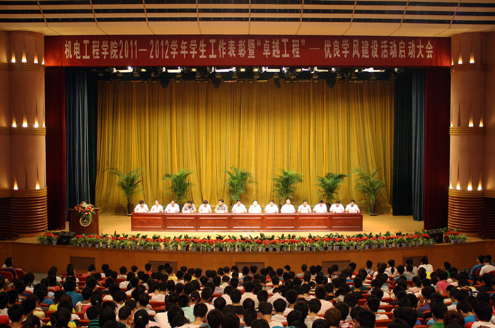 在大礼堂隆重举行2011-2012学年学生工作表彰暨“卓越工程”—优良学风建设活动启动大会。校党委副书记杨德东、副校长张全国、校党委宣传部部长郭战伟、教务处处长何松林、招生就业处处长张留占、校团委书记余磊、学生处副处长张红阳、研究生处副处长孙育峰及成人影院