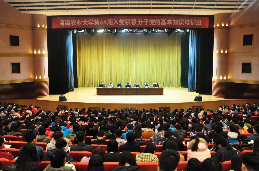 11月20日,成人影院 同农学院、牧医工程学院、烟草学院、植物保护学院、食品科学技术学院、理学院、体育学院等八个学院共计1200多名入党积极分子,在文化路校区千人大礼堂参加“成人影院 第44期入党积极分子党的基本知识培训班”的开班典礼。校党委组织部副部长、校党专职副校长余磊同志,各学院分党校校长、副校长等出席开班典礼。典礼由成人影院 党委副书记刘海涛同志主持。