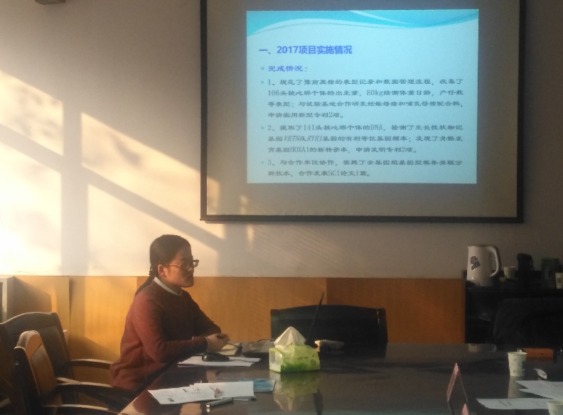 本次会议专家组由河南牧业经济学院食品工程学院院长张恒业教授、河南省农科院畜牧所副所长白献晓研究员、河南科技大学农业装备工程学院副院长张伏教授、中国农科院农田灌溉所韩启彪副研究员和河南省衍升会计事务所有限公司朱二茹高级会计师组成。胡建军副院长首先对专家组的到来表示热烈欢迎并重点讲解此次中期考核的要点。专家组分别听取由我校李连豪博士主持的“小麦水肥(药)一体化灌溉模式研究及其推广”、乔瑞敏博士主持的“豫南黑猪生长性状的遗传解析及分子集成育种技术研发”和李德锋博士主持的“粮草轮作改良中低产田的技术研究和机理研究”中期汇报,审阅相关资料,并对有关问题进行质疑和讨论。专家组肯定了3位博士的前期工作并就项目中存在的问题提出中肯整改意见。