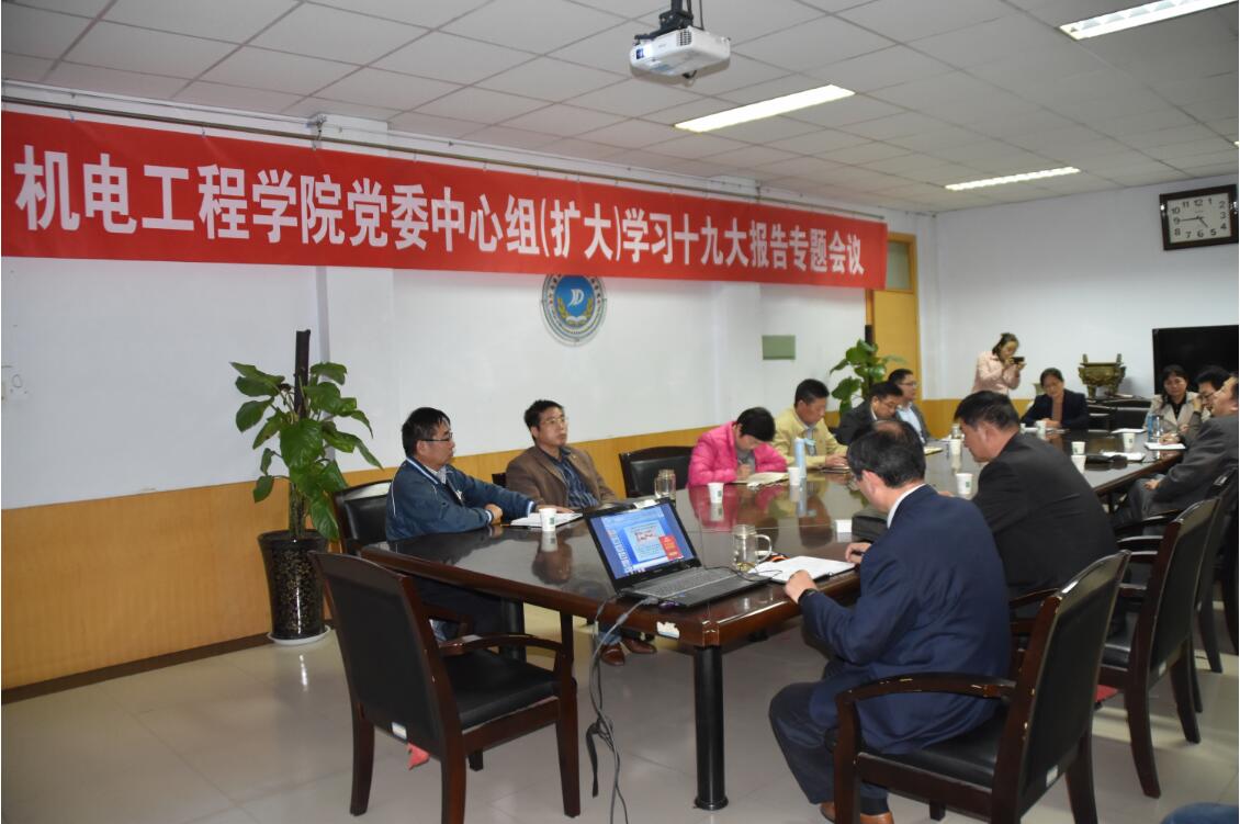 院党委书记李世欣首先对十九大报告进行领学,他从十六个方面对十九大报告中的重要内容进行了阐述,就十九大召开的重要意义、十九大报告的精神脉络、十九大报告的最大亮点进行深入分析,针对经济建设、政治建设、文化建设、社会建设、生态文明建设、全面从严治党、民生问题、教育问题、新时代坚持和发展中国特色社会主义的基本方略、新时代中国特色社会主义思想等问题与大家进行交流学习,认为习近平总书记所作报告实事求是,鼓舞人心,要求大家在日后的要认真组织学习。