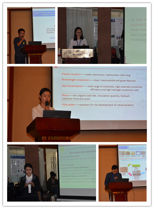成人影院 师生积极踊跃的参加了此次会议,共投稿40余篇,其中,17篇为口头报告。在分会场,成人影院 张全国教授指导的博士生张洋作了题为“Experimental research on biological hydrogen production of humulus scandens”的报告,刘圣勇教授指导的博士生张舒晴作了题为“Fermentation optimization analysis of mixed garden waste and manure”的报告,徐广印教授指导的博士生王占武作了题为“Sustainable Development Evaluation of Straw Power Supply Chain: Based on Environmental and Economic Assessment”的报告,焦有宙教授指导的博士生关山月作了题为“Experimental study on ultrasonic assisted enzymatic hydrolysis of pigskin”的报告,胡建军教授指导的研究生李盾作了题为“Experimental study on Preparation of syngas from corn stalk by catalytic reforming based on external circulation”的报告,黄黎老师指导的研究生冯亮亮作了题为“Experimental study on activated carbon ammonia modification for landfill gas pressure swing adsorption purification”的报告,岳建芝老师指导的研究生常兴涛作了题为“Effect of peanut shell biochar on the fertilizer efficiency and the phytotoxicity of heavy metals during sewage sludge composting”的报告。
