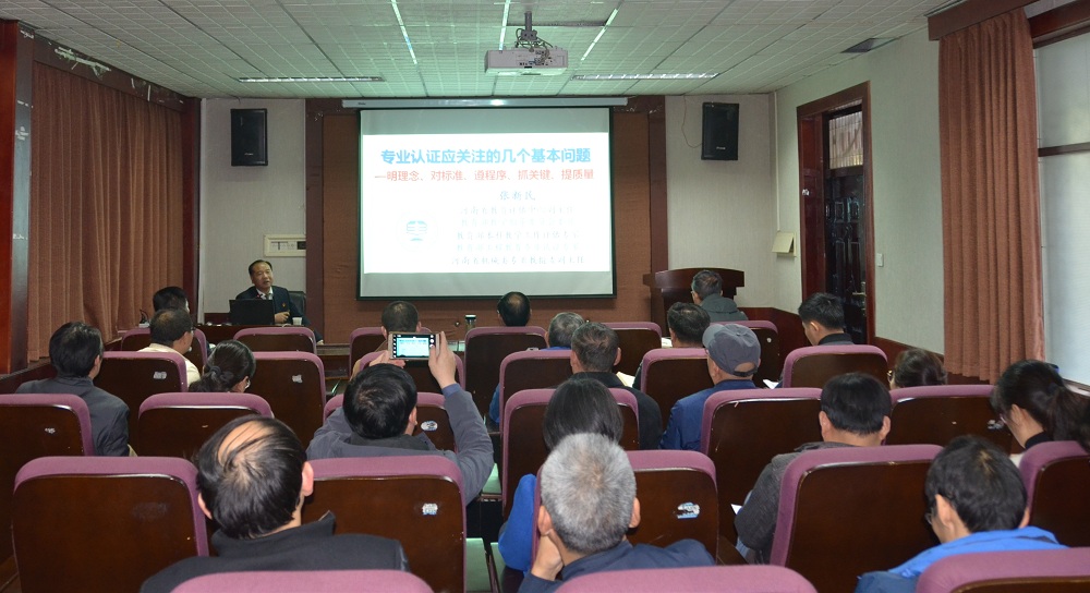 在15号楼学术报告厅召开了工程教育专业认证专家报告会,特邀教育部工程教育认证专家、教育部高等学校教学指导委员会委员、河南省教育评估中心副主任张新民教授作了题为《专业认证应关注的几个基本问题——明理念、对标准、遵程序、抓关键、提质量》的专题报告。报告会由院长徐广印主持,学院领导班子、各系主任、相关专业教师等参加了报告会。