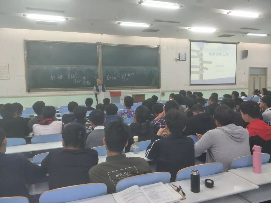 18级新生开展“如何读好大学”、“大学生人生中面临的三大问题”专题讲座,旨在探讨大学生成长过程中即将面临的“成人、成才、成家”三大人生课题,帮助新生们在树立更加明确的学习目标,调动了他们学习的积极性。