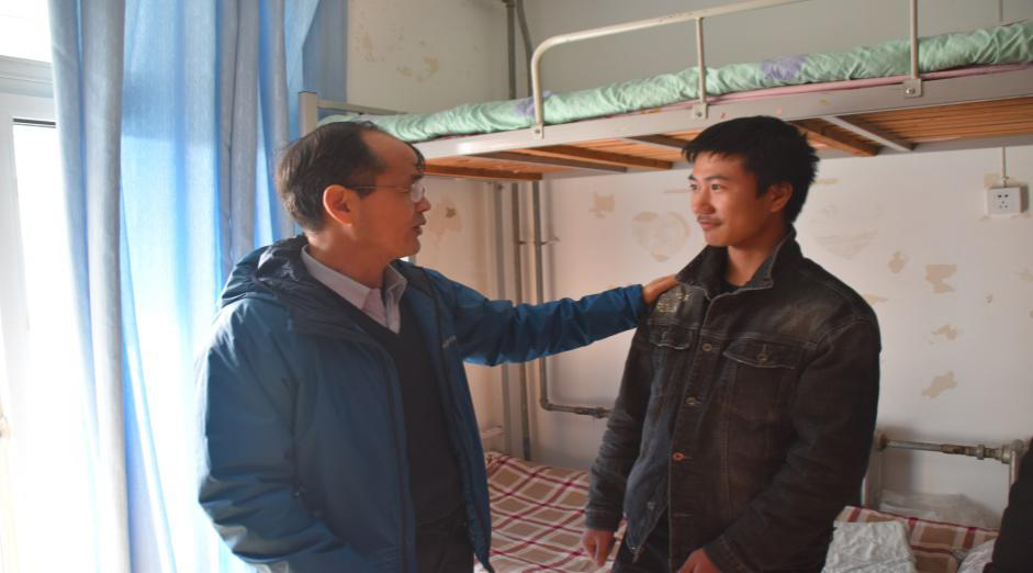 李世欣走进宿舍,他非常关心学生们生活条件,亲自查看学生们床铺上被褥的厚度,提醒大家天气寒冷,一定要注意保暖,并亲切地询问大家的学习与生活情况。他勉励同学们要勤奋学习,正视困难,自立自强,争做新时代优秀青年,报效祖国。刘海涛也与大家分享了自己求学时的经历。张良等学生纷纷表示自己将会使温暖化为动力,努力学习专业知识,不辜负老师们的殷切希望。宿舍里温情洋溢,感动着在场的每一个人。一条棉被,抵御寒冷,更能温暖人心。