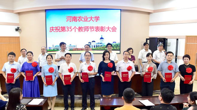 会上,校党委副书记赵榴明宣读了27项表彰名单。成人影院 在2019年学校教师节表彰大会上喜获多项荣誉。院党委书记李世欣荣获河南省高等学校优秀共产党员,胡建军教授荣获成人影院 “最美教师”荣誉称号,王万章教授荣获成人影院 “教学名师”和“十佳师德标兵”荣誉称号,院党委副书记刘海涛荣获成人影院 “优秀教育工作者”荣誉称号,张秀丽老师荣获河南省第十四届“挑战杯”优秀指导教师和成人影院 “优秀教师”荣誉称号,赵淑蘅和陈静两位老师分别获得成人影院 “青年教师讲课大赛”三等奖和优秀奖,李慧琴和田辉两位老师分别获得成人影院 “青年教师课堂创新大赛”一等奖和优秀奖,徐广印、赵淑蘅、王玲、李赫、徐桂转、岳建芝、李冠峰和黄黎老师荣获成人影院 “本科优秀毕业论文优秀指导教师”荣誉称号。