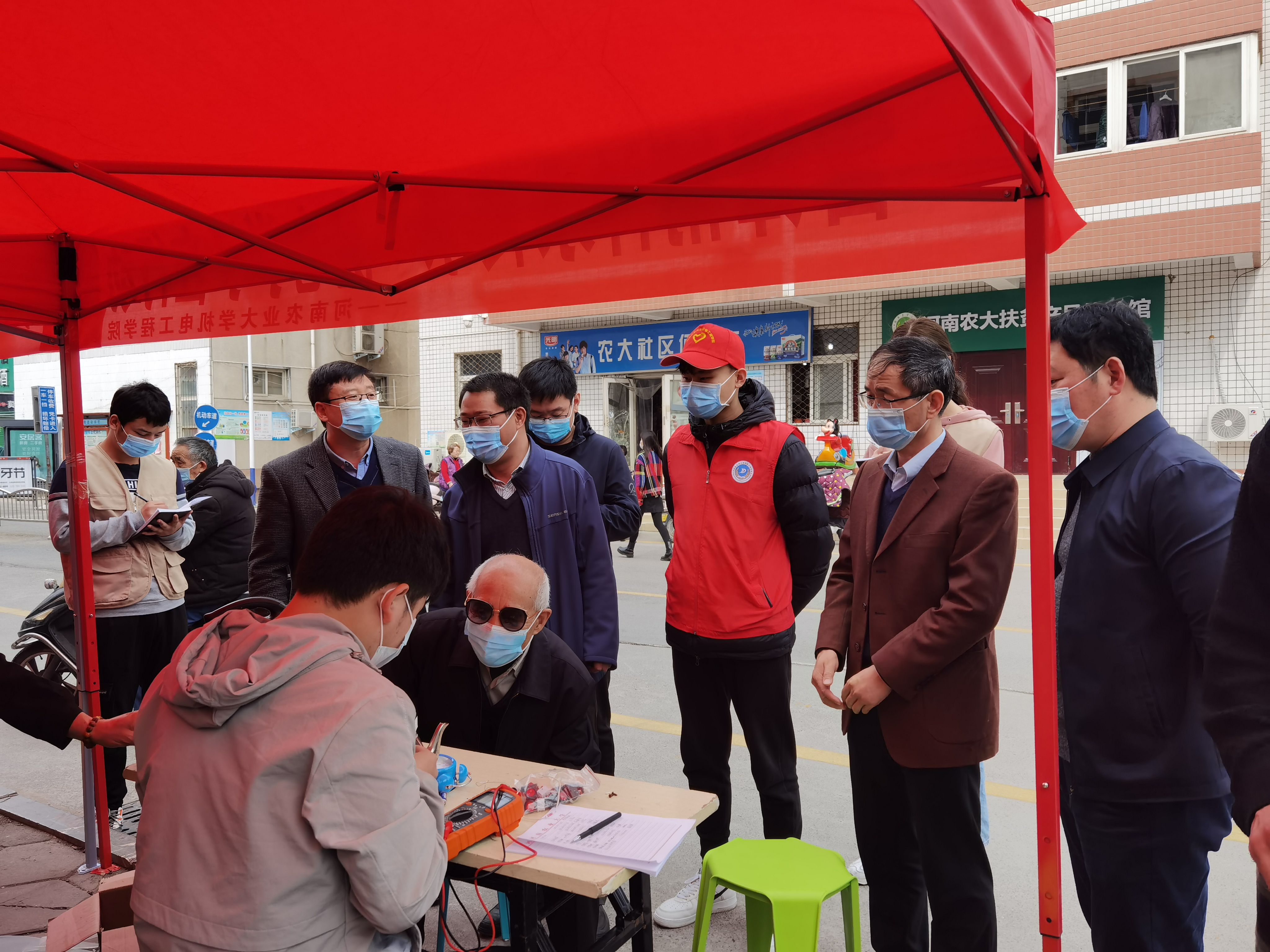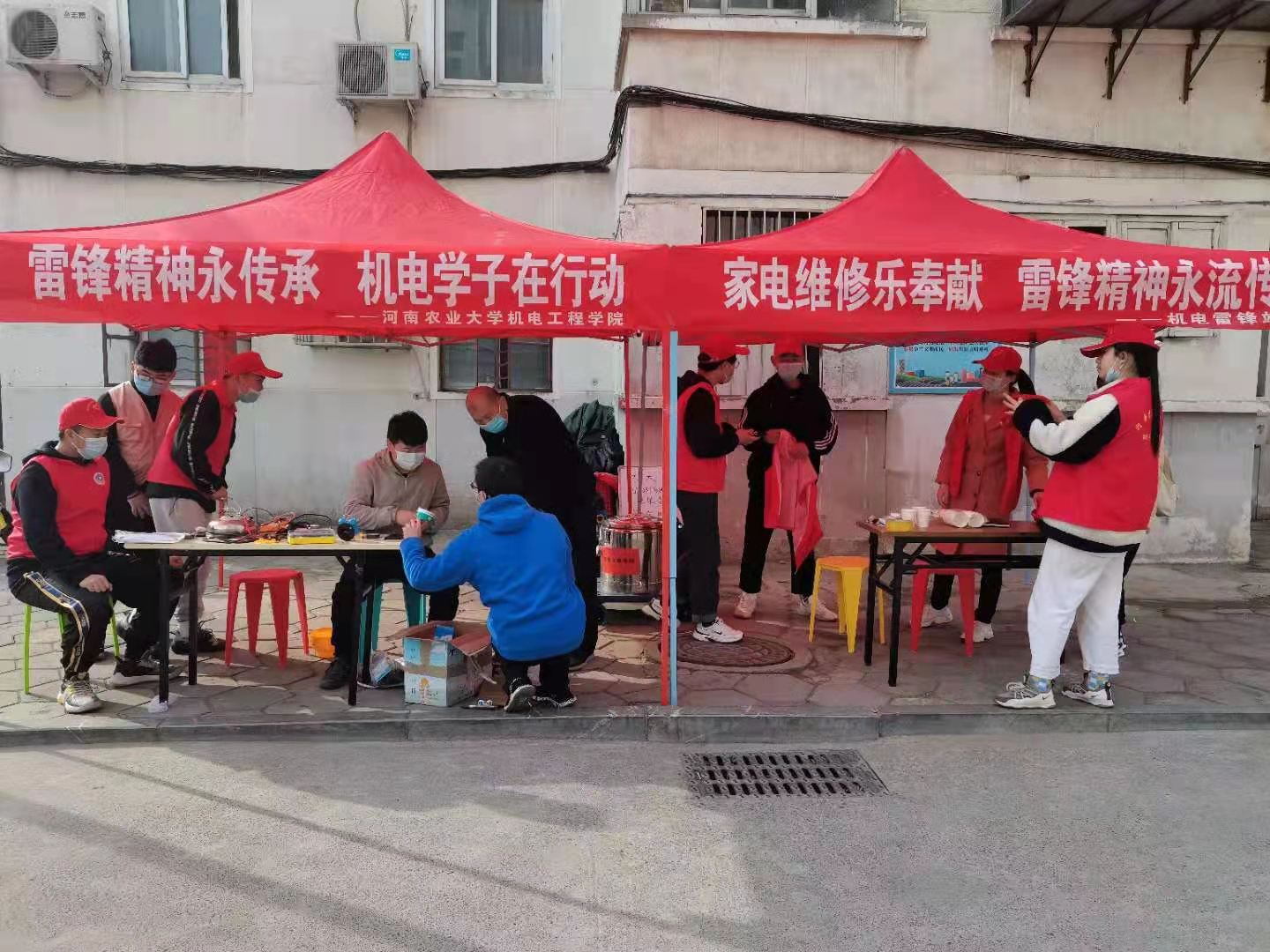 组织雷锋站志愿服务团前往于文化路校区农大一区家属院进行雷锋日家电维修志愿服务活动。院党委书记李世欣、院长胡建军、团委书记黄笑、农机系党支部书记李赫等院领导老师现场参与指导活动开展。