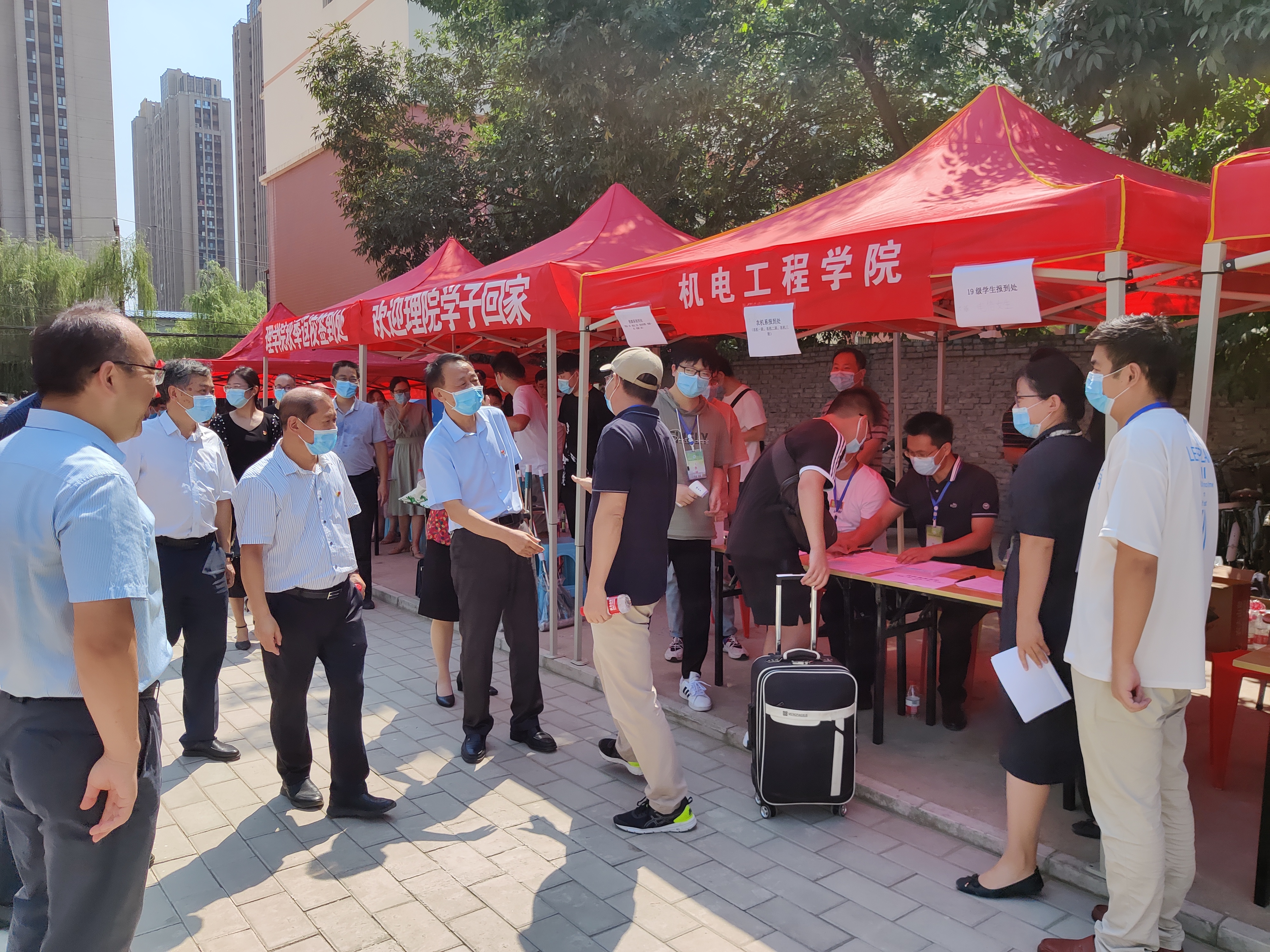 迎来近一千四百名秋季复学返校学生。当天,校党委书记魏蒙关、副校长介晓磊、副校长尹新明,院党委书记李世欣、院党委副书记赵宁、副院长胡建东、副院长刘淑杰来到报到现场,看望慰问返校学生。