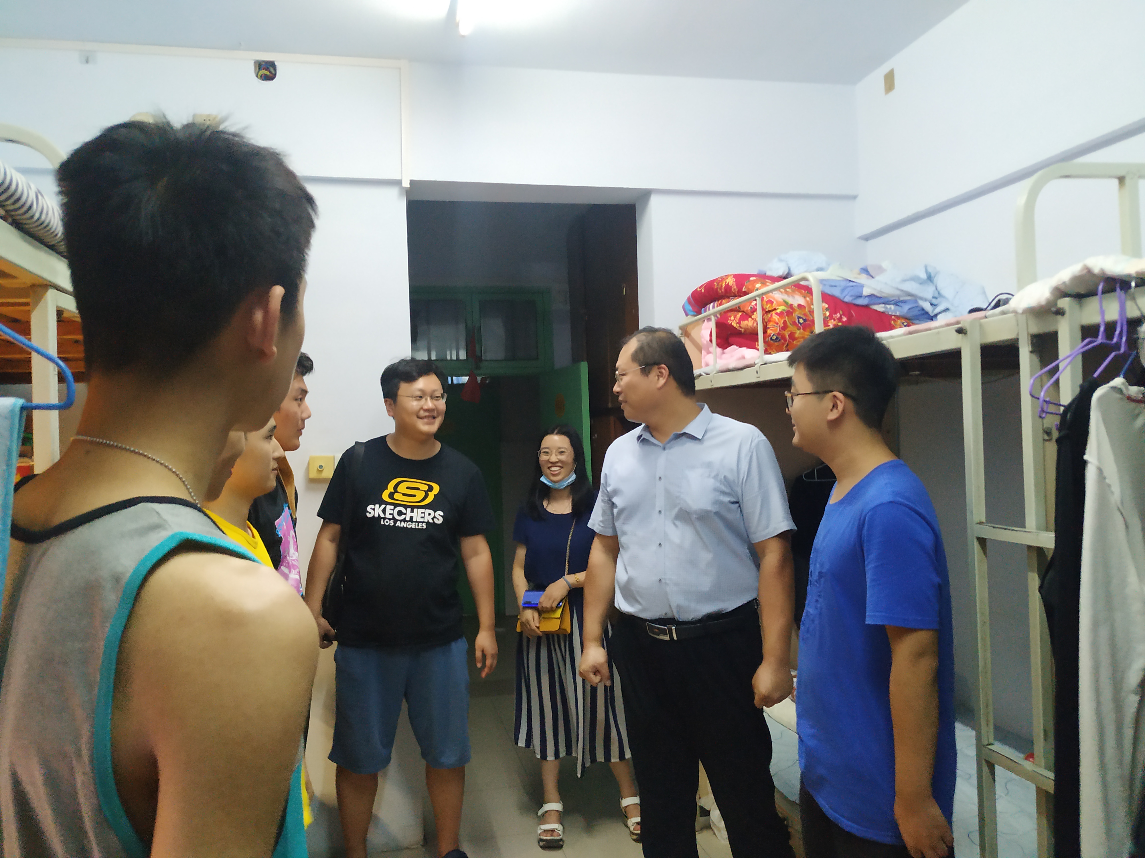 学生报到后,学院领导班子成员、院团委老师、各年级专业辅导员深入学生宿舍看望学生,深入了解大家的思想状况、假期生活、学习计划等情况,叮嘱同学们要严格遵守学校疫情防控各项规定,认真做好个人防护;要尽快调整状态,振奋精神,集中精力投入到新学期的各项学习工作中。