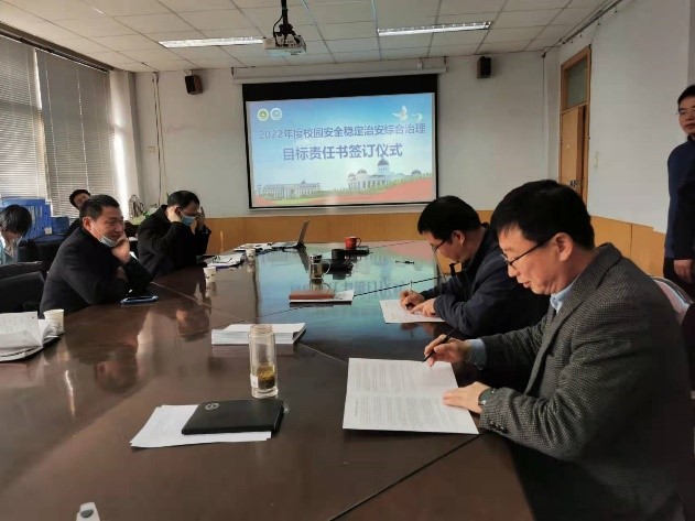 在15号楼二楼会议室举行校园安全稳定、治安综合治理目标责任书签订仪式,学院领导班子、学院各教工党支部和各单位负责人参加活动。仪式由院长胡建军主持。