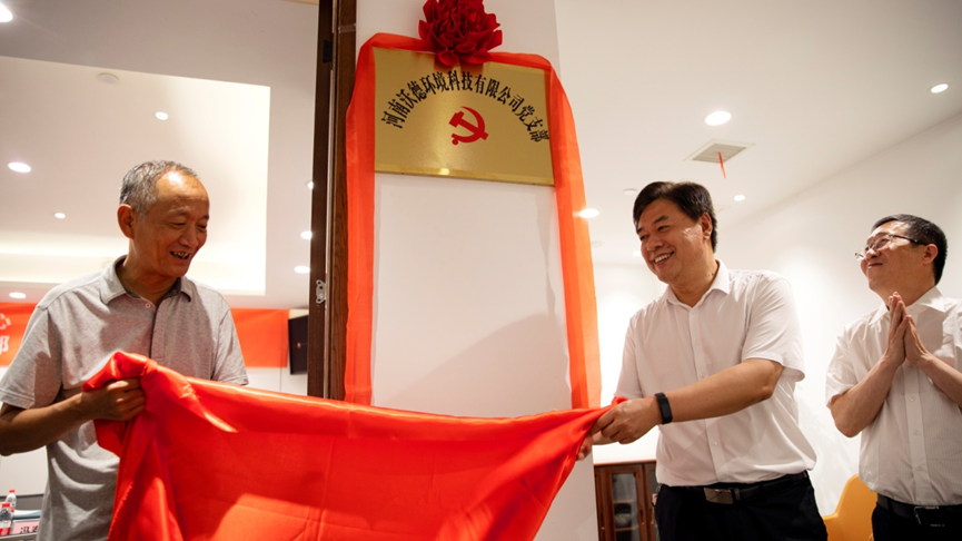 沃德地热研发中心揭牌;李成吾和郭凤春共同为河南沃德环境科技有限公司党支部揭牌;贺超代表能源系教工党支部向沃德环境有限公司党支部捐赠了党建资料。 (图/文:党钾涛)