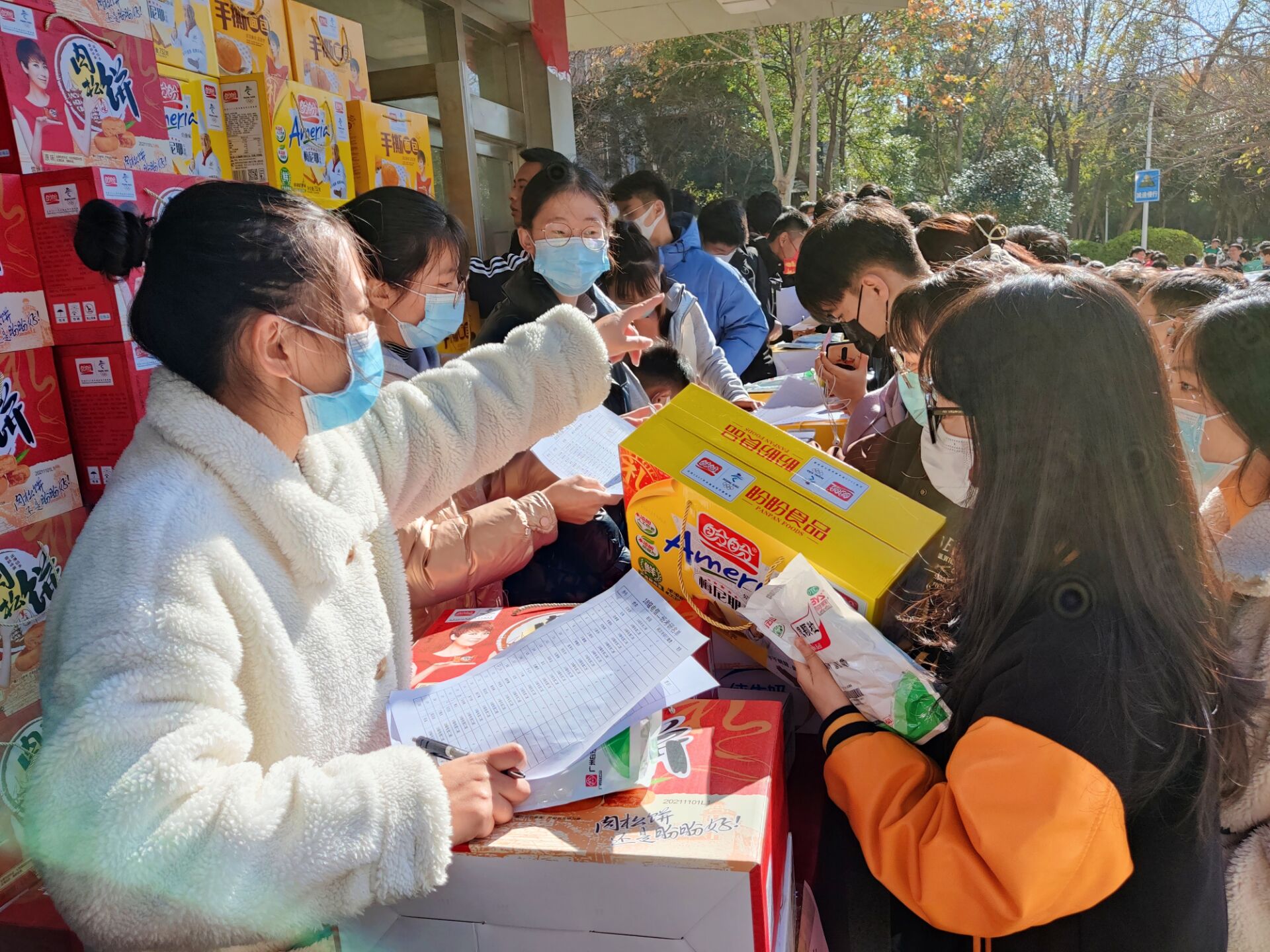 活动期间,在场同学合唱起歌曲《我相信》并重温了院训,表示一定不辜负学院和老师们的期望,在最后的这段日子里,竭尽全力复习备考。随后,同学们自行、有序进行排队,各位老师亲自为他们送上学院精心准备的牛奶、面包、口罩、板蓝根等考研助力物品,并逐一送上祝福,表达了学院对全体考研学子的衷心祝福和殷切期盼。