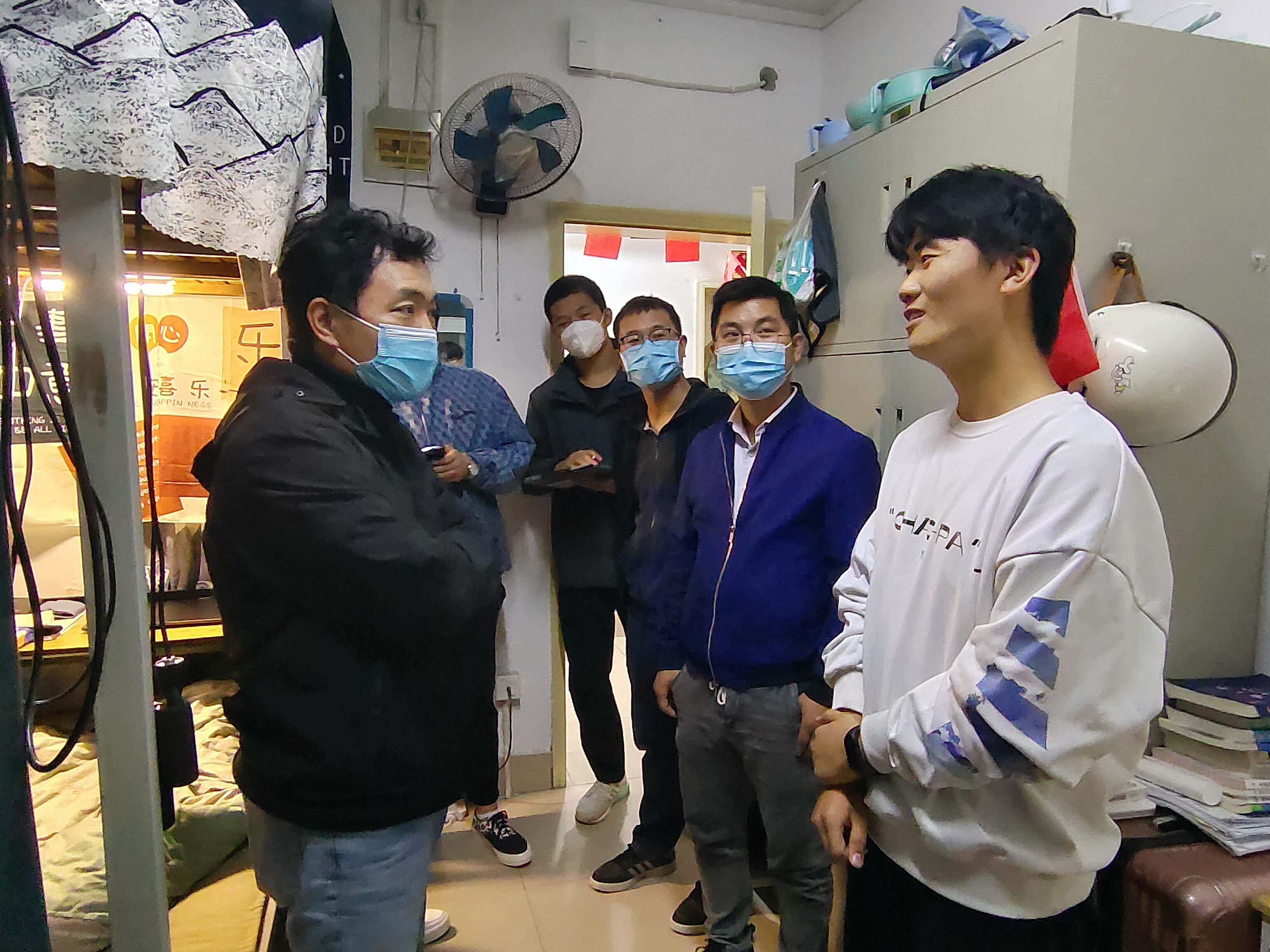 在走访慰问过程中,校、院领导老师详细询问学生网课期间存在的问题,并针对学生反映的生活问题进行登记。了解学生现阶段的学习情况、课余时间的兴趣爱好,鼓励学生劳逸结合,在提升个人能力的同时保持健康强壮的体魄。强调当前阶段的特殊性,提醒学生做好个人防护,保持良好的生活作息,做好宿舍内务卫生,同时认真遵守疫情防控规定,及时进行核酸检测和健康上报。