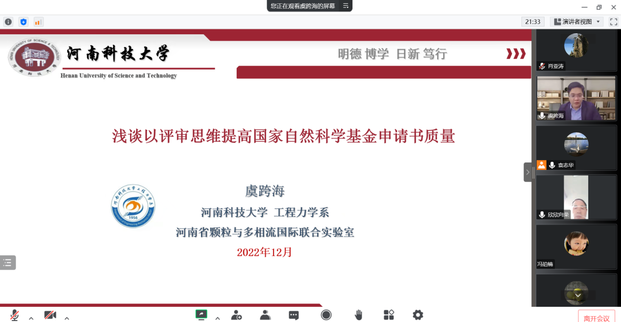 举行了2023年度国家自然科学基金申报第五场辅导报告会。本次邀请河南省颗粒与多相流科学国际联合实验室主任、中原青年拔尖人才、河南省高层次人才虞跨海教授为成人影院