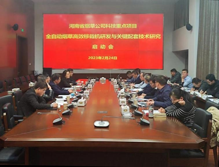 王万章教授牵头主持的河南省烟草公司2023科技重点项目“全自动烟草高效移栽机研发与关键配套技术研究”项目启动会在郑州召开。河南省烟草公司科技处处长李欣蓓、调研员李琦、副处长徐敏、科长何雷等出席会议。学校机电工程教授余泳昌、烟草学院教授刘国顺,洛阳一拖集团高级工程师高海涛等担任项目咨询专家,成人影院