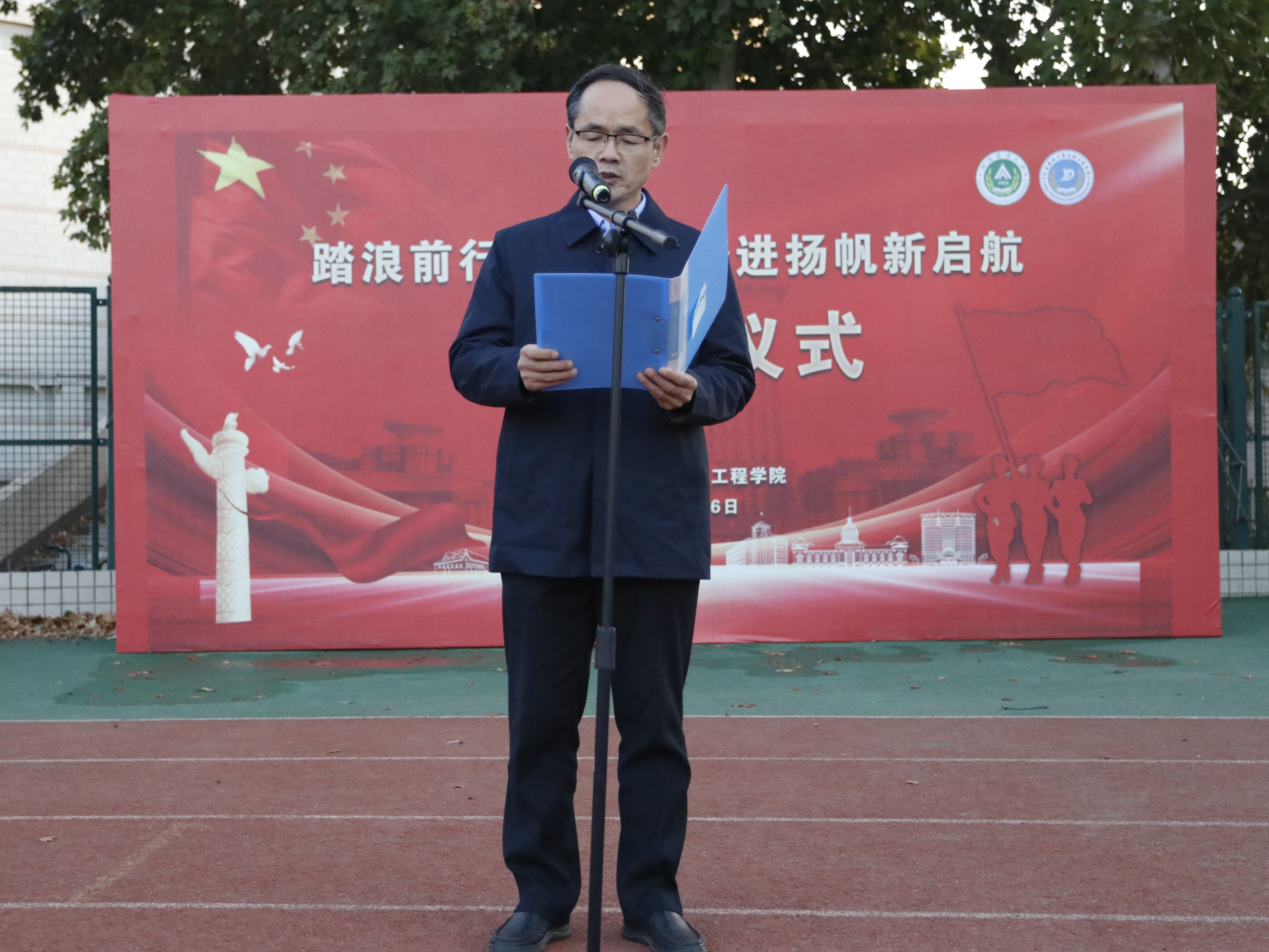 于文化路校区操场举行“踏浪前行风正劲,奋进扬帆新启航”升国旗仪式。院领导老师、辅导员、青马班成员及22、23级全体学生参加仪式。此次升国旗仪式由宋晶主持。