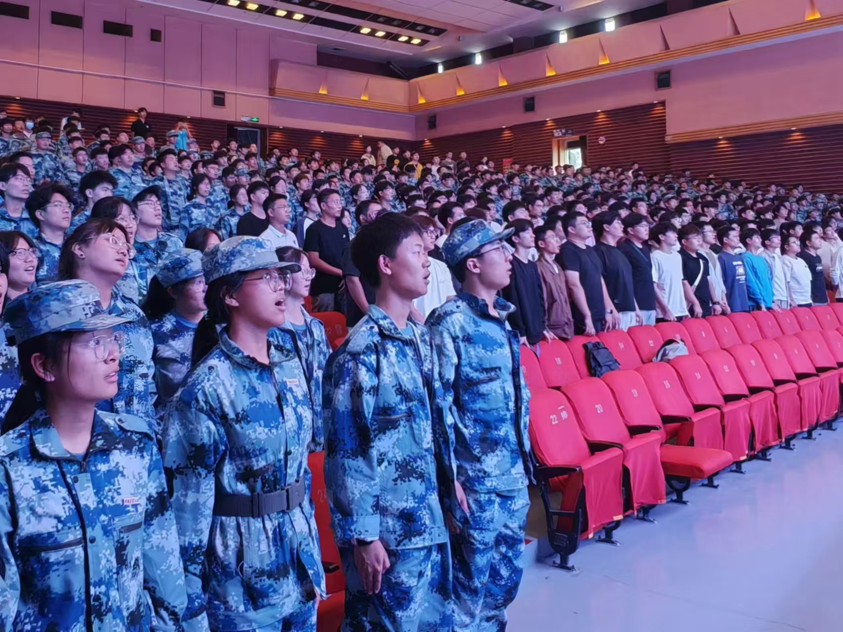 典礼在庄严肃穆的国歌声中拉开帷幕,全体师生起立,共同奏唱中华人民共和国国歌。随后,学院领导老师为新生代表佩戴上成人影院 的校徽,象征着学院悠久机电工程传统的传承与责任的交接。