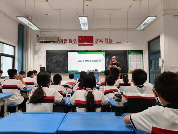 在互动环节中,朱博士积极引导学生进行思考,并向主动回答问题的学生颁发了小礼品,从而激发了他们的参与热情。现场气氛热烈,学生们积极举手回答问题。面对学生的积极提问,朱博士耐心地解答了他们关于无人农场技术以及如何参与未来农业创新等问题。学生们纷纷表示,通过这次课程,对现代农业技术有了更深入的了解,并对未来从事相关领域的工作产生了浓厚的兴趣。