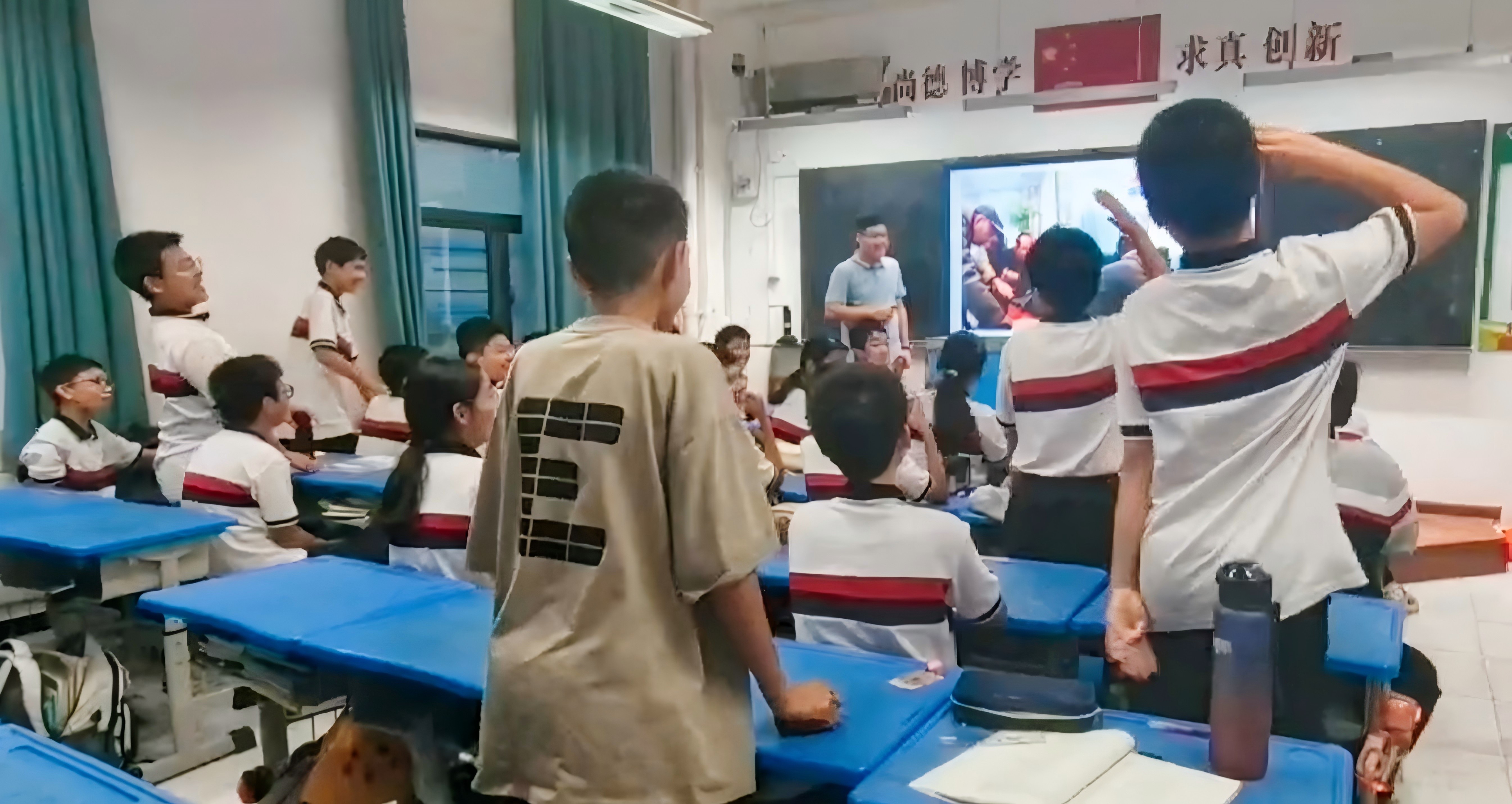 讲座接近尾声时,吕老师播放了向袁隆平院士汇报合作交流的视频。视频开始,同学们自发起立,向袁院士致以崇高的敬意,随后全神贯注地聆听院士的声音。这段视频不仅展现了袁院士的大家风范。此次科普教育活动不仅丰富了同学们的校园文化生活,更在潜移默化中增加了学生的科学兴趣,培养了他们的科学思维与创新能力。