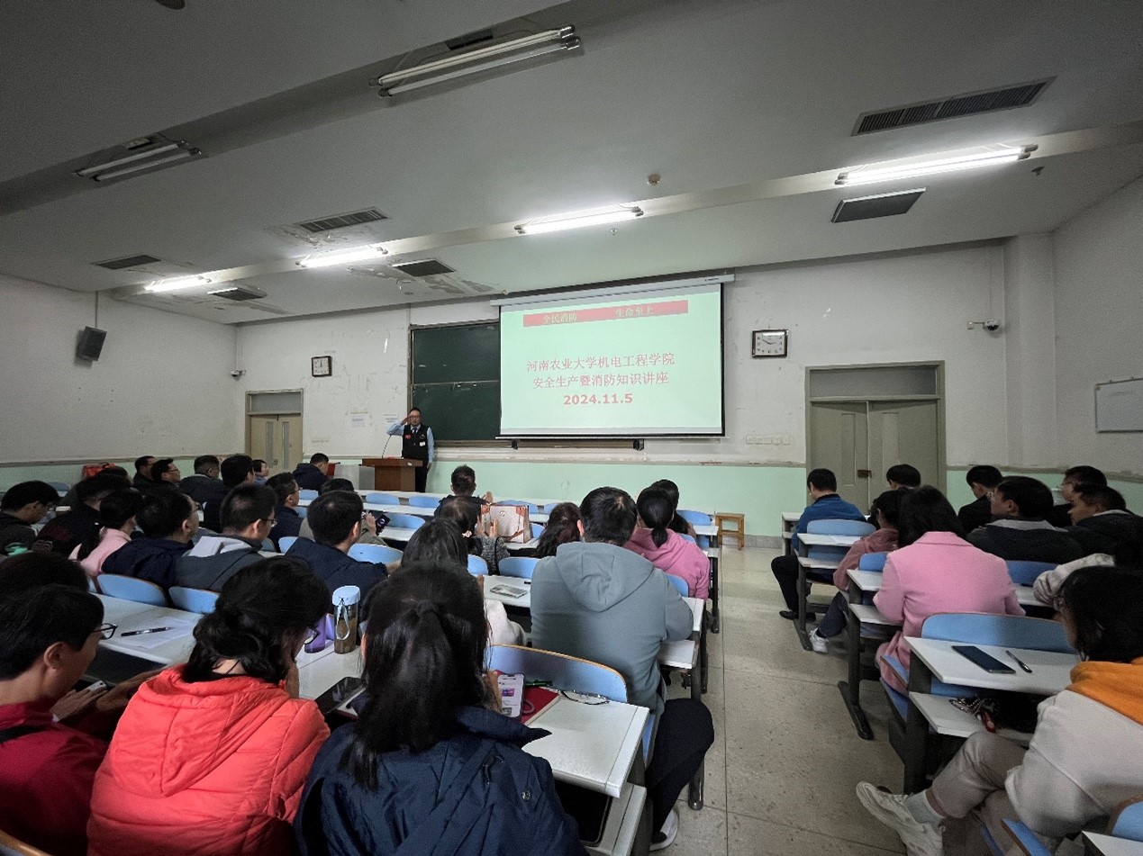 为贯彻落实学校2024年“119消防安全月活动”有关部署,11月5日,机电学院在文化路校区开展2024年“119”消防宣传月消防安全培训。成人影院 全体教职工和学生代表参加培训。成人影院 院长胡建军主持会议。
