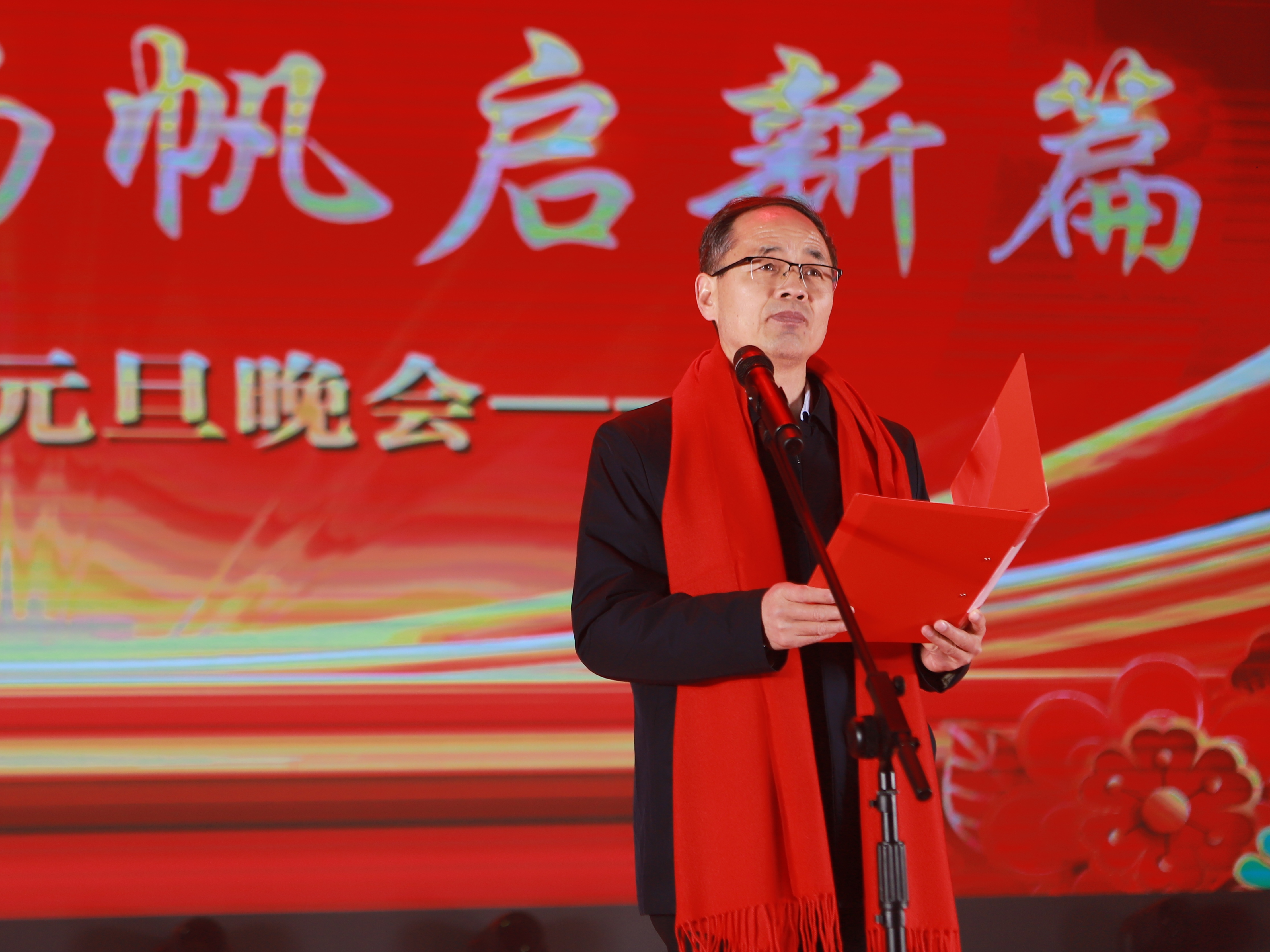 于文化路校区千人大礼堂隆重举办“砥砺笃行向未来,逐梦扬帆启新篇”2025年元旦晚会。此次晚会特邀嘉宾校党委学生工作部部长、学生处处长、武装部部长徐峰老师,副部长张二龙老师,校团委副书记雷雯老师,成人影院
