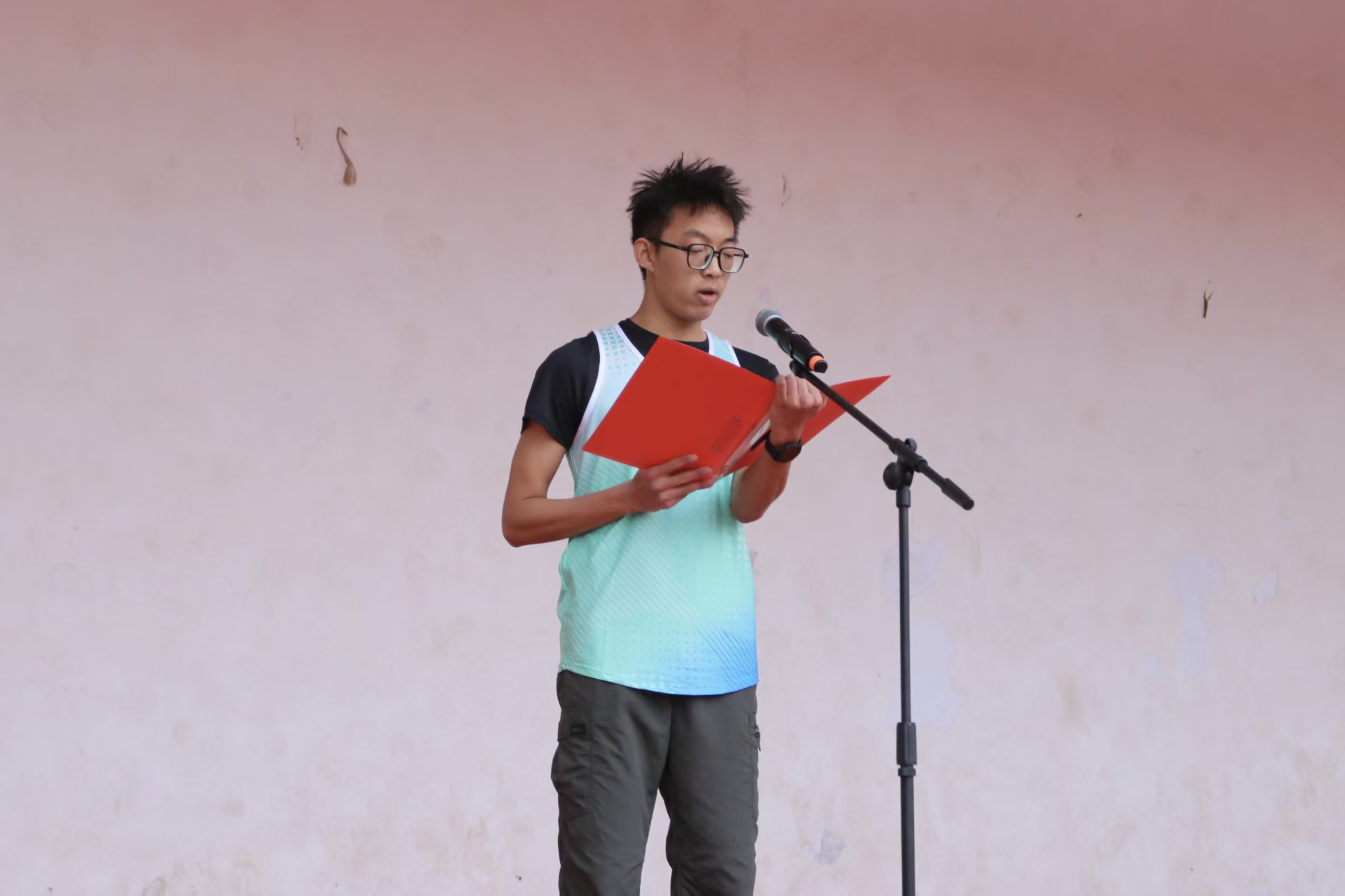 紧接着,学生代表姜文硕登台发言。他号召全体同学以最饱满的热情投入赛场,承诺将与所有运动员一道,在跑道上奋力冲刺、在赛场中勇攀高峰,用汗水诠释积极参赛、拼搏进取的青春决心。随后,裁判员代表范玉辉庄严宣誓,承诺将以公正公开的态度执裁,确保运动会的顺利进行。