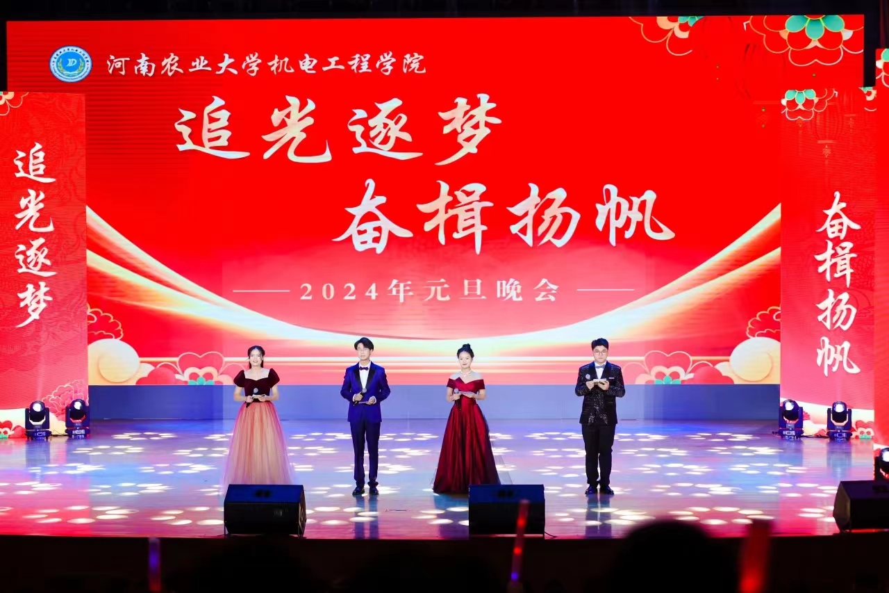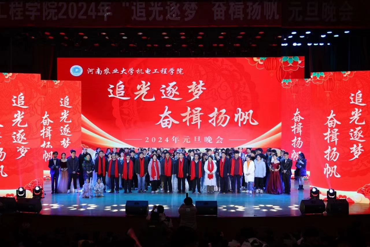 顺颂时祺,秋绥冬禧,本次“追光逐梦,奋楫杨帆”元旦晚会共分为三个篇章,分别为:绽放青春篇、韶华不负篇、星辰大海篇。晚会以热情奔放的舞蹈《奔跑的青春》拉开帷幕,彰显了青春的华彩,谱写了新时代青年的时代篇章,奔涌的农大后浪势不可挡;动人的歌曲联唱《唱响未来》,让我们畅想未来,以明志为灯,以实力为舵,定将平定风浪,闪耀青春的光芒;朗诵《再见2023,你好2024》致敬过去,奔赴未来,鼓励全体师生自我创新,敢于争先,在新时代再建新功;舞蹈串烧《舞动青春》展现出青春应该有锐不可当的激情,广大青年逆风而上,以梦为马,化作一团青春火焰,追随光,成为光,散发光;情景剧《血脉》用真实细腻的表演和引人入胜的情节展现出“血脉”不仅是血管系统,更是为国奉献的炽热之心的传承;舞蹈《教师阵线联盟》,用跳跃的音符、动感的舞姿展现了老师们的青春活力,点亮传承与希翼;小品《天网恢恢》用幽默诙谐的方式来讲述诈骗对我们的危害,提醒农大学子提高警惕,不要轻易相信陌生人,以免上当受骗;此外,乐队弹唱《夜空中最亮的星》、小提琴演奏《告白之夜》、歌伴舞表演《相亲相爱》,都受到全场观众的热烈反响,现场气氛高涨。最后,学院领导老师上台送上元旦祝福,为全院师生送上最诚挚的节日祝福,使整场晚会的气氛推向高潮!