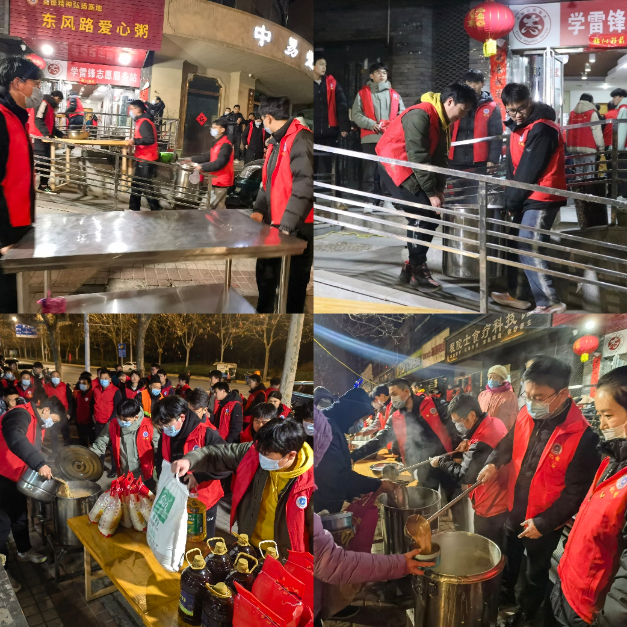 凌晨寒风起,志愿送暖阳。晨光未现,志愿者们却早早地在粥屋集合,他们精神饱满,热情如火,与粥屋的工作人员并肩作战,投入到为环卫工人准备早餐的工作中。洗菜、熬粥、蒸馒头、摆放桌椅……,他们忙碌而有序。朝阳初起之时,志愿者们将热粥、热菜、馒头依次送入每一位环卫工人的,他们用实际行动诠释着雷锋精神,每一句问候、每一个微笑都温暖着在场所有城市美容师的心。