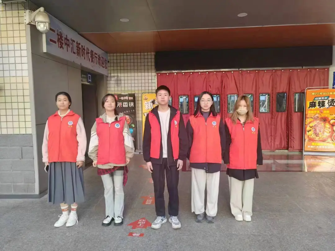 组织志愿者们在桃李餐厅进行为期一周的“勤俭养德”餐厅志愿服务。