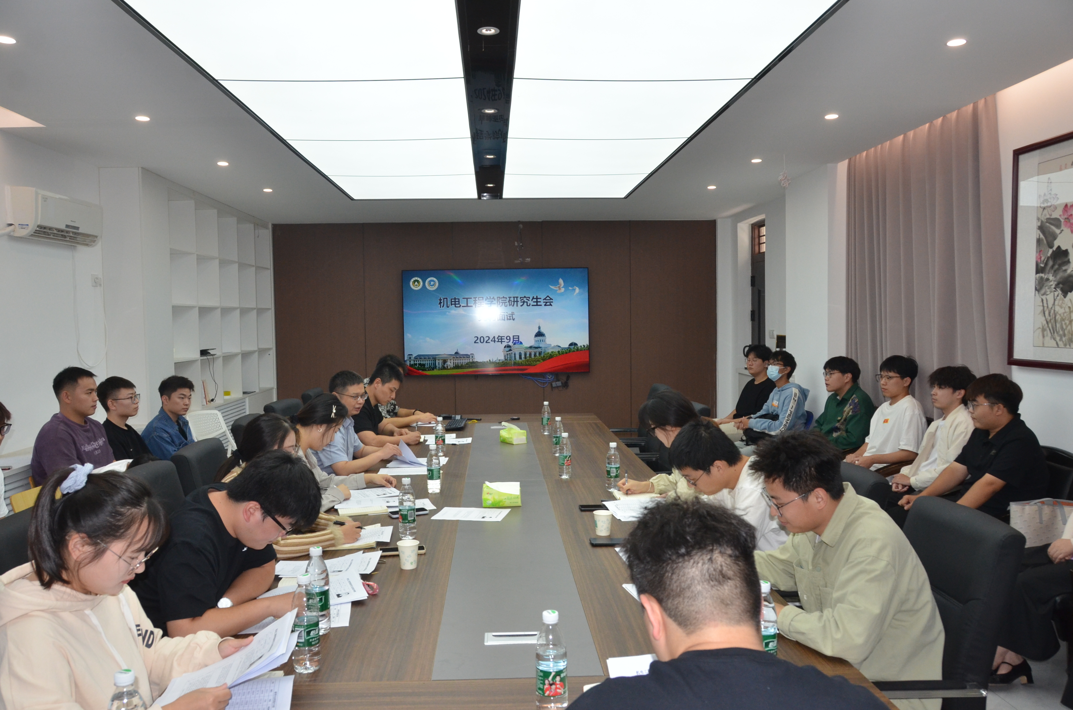 研究生会在文化路校区15号楼多功能会议室开展招新面试工作。此次面试由研究生辅导员李锦主持,院党委副书记宋晶及研究生学生干部代表担任评委。