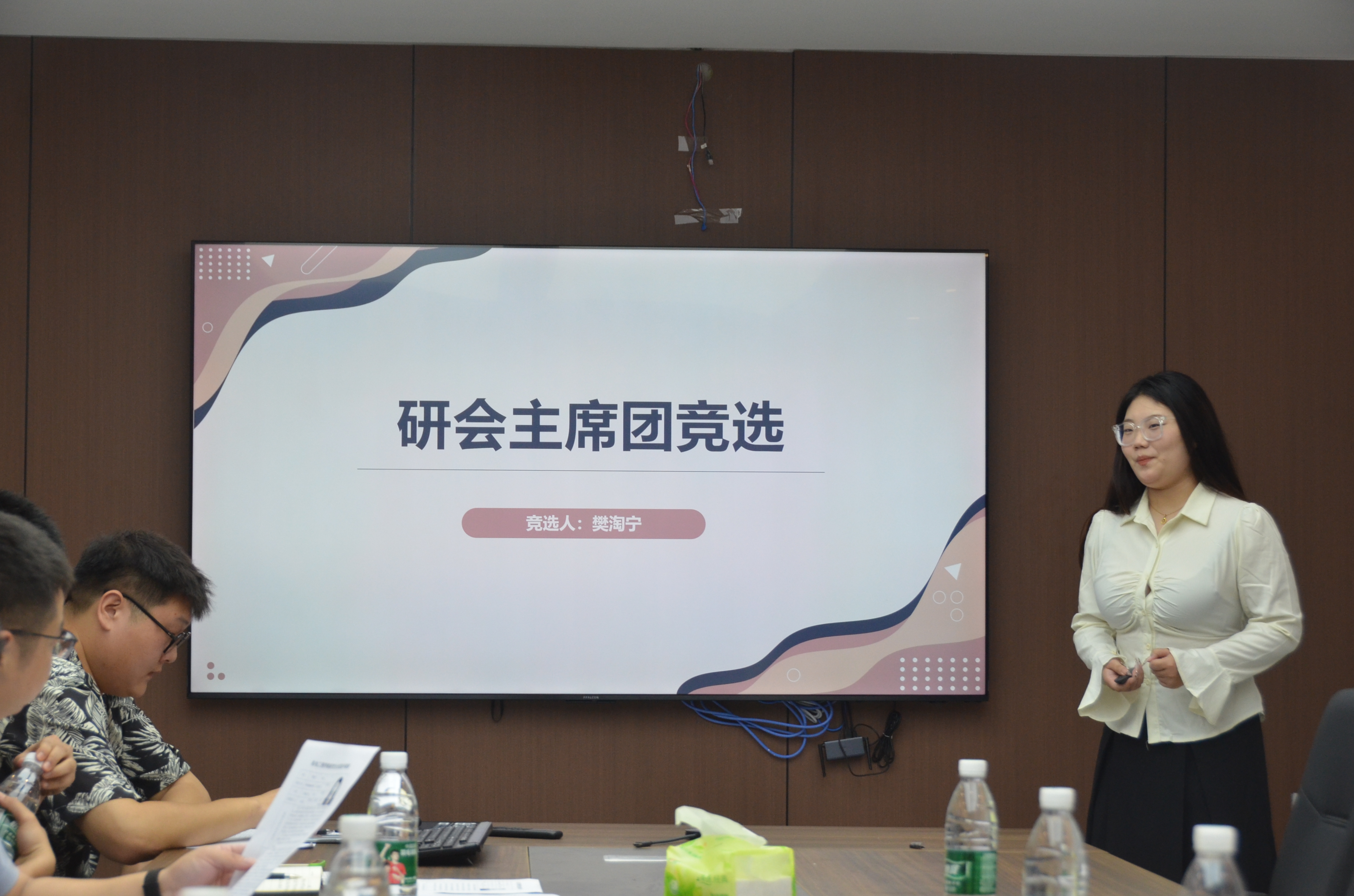 面试过程分为两个环节。第一个环节是自我介绍,参加面试的学生对自己的具体信息、工作经历、个人优势等方面进行介绍,并陈述竞选理由。第二个环节是接受评委的提问,回答有关未来工作规划的问题,并提出个人的见解。面试结束后,评审小组根据参加面试者的表现进行讨论并决定是否录用。