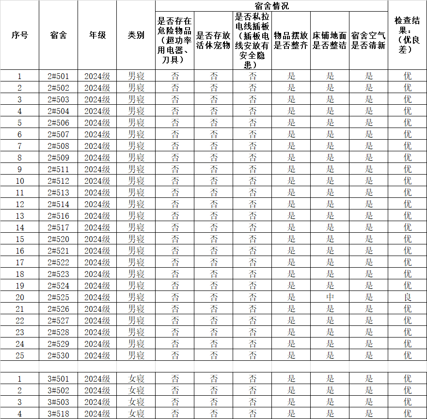学院研究生会生活部对24级宿舍卫生安全检查情况公示如下: