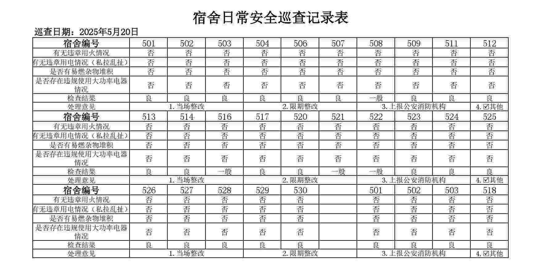 为进一步加强学生宿舍安全卫生管理,营造整洁、健康、文明的生活环境,促进学生养成良好的生活习惯,成人影院 于2025年5月20日晚开展了学生宿舍安全卫生检查工作。现将检查情况总结如下: