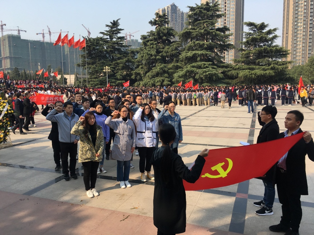 上午9:30,参加扫墓活动的研究生党员来到郑州烈士陵园。党员们有序的走向革命先烈纪念碑,在先烈纪念碑前鞠躬默哀并献花,表达对先烈的悼念和敬意。在庄严肃穆的纪念碑下,全体党员在党旗前宣誓,重温入党誓词,进一步坚定了自己作为学生党员的责任和义务,更加明确了学生党员要继承和发扬光荣的革命传统,肩负起时代赋予的使命,为建设富强文明和谐美丽的社会贡献自己的力量。