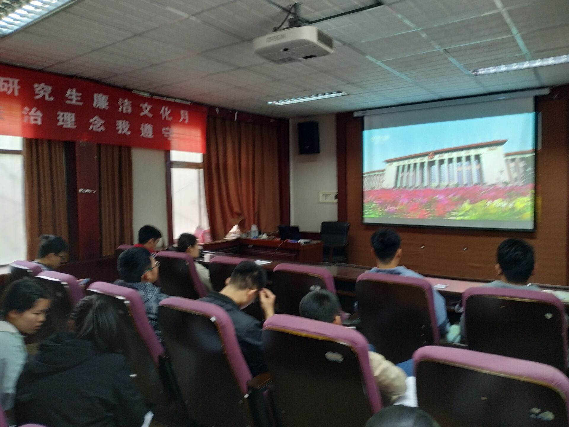 研究生一同观看了《法治中国》纪录片,并围绕“严守法律底线,构建法治校园”的主题进行了交流座谈,在研究生中普及法律知识、弘扬法治精神,积极推动建设法治校园文化。