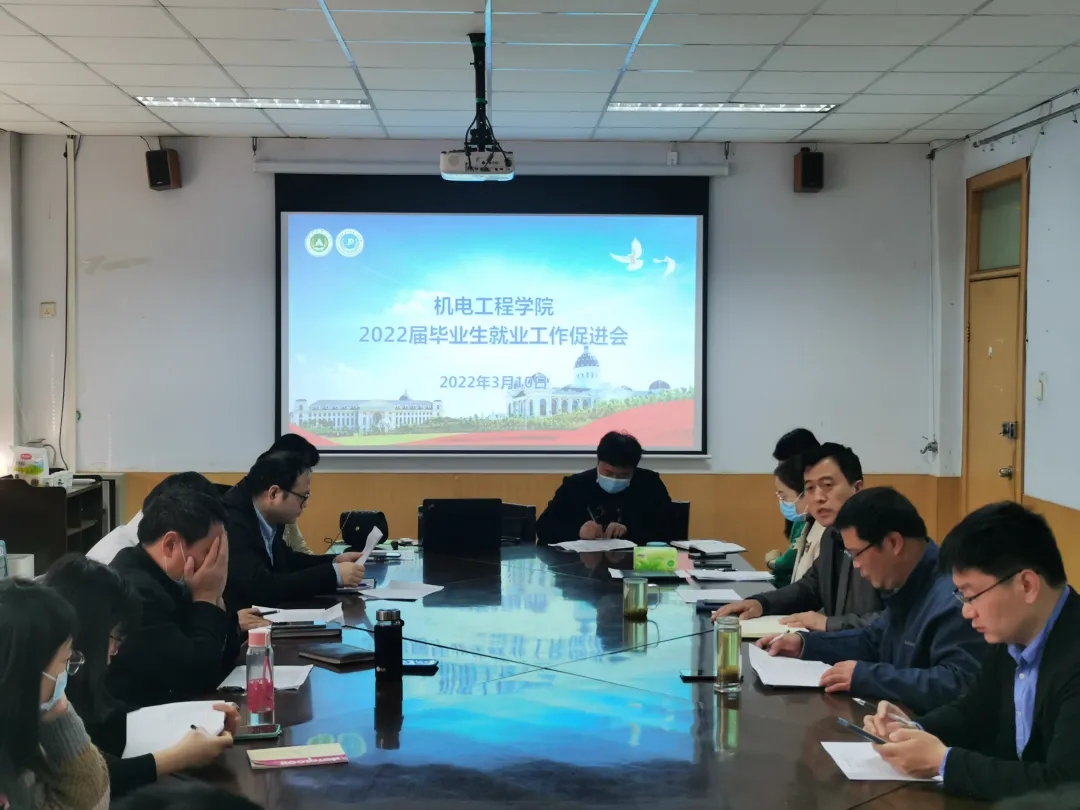 于文化路校区15号楼二楼会议室召开2022届毕业生就业工作促进会。院长胡建军,院党委副书记赵宁,院团委书记黄笑出席本次会议,各系主任,毕业班辅导员胡亭亭,毕业班专业辅导员参加会议。