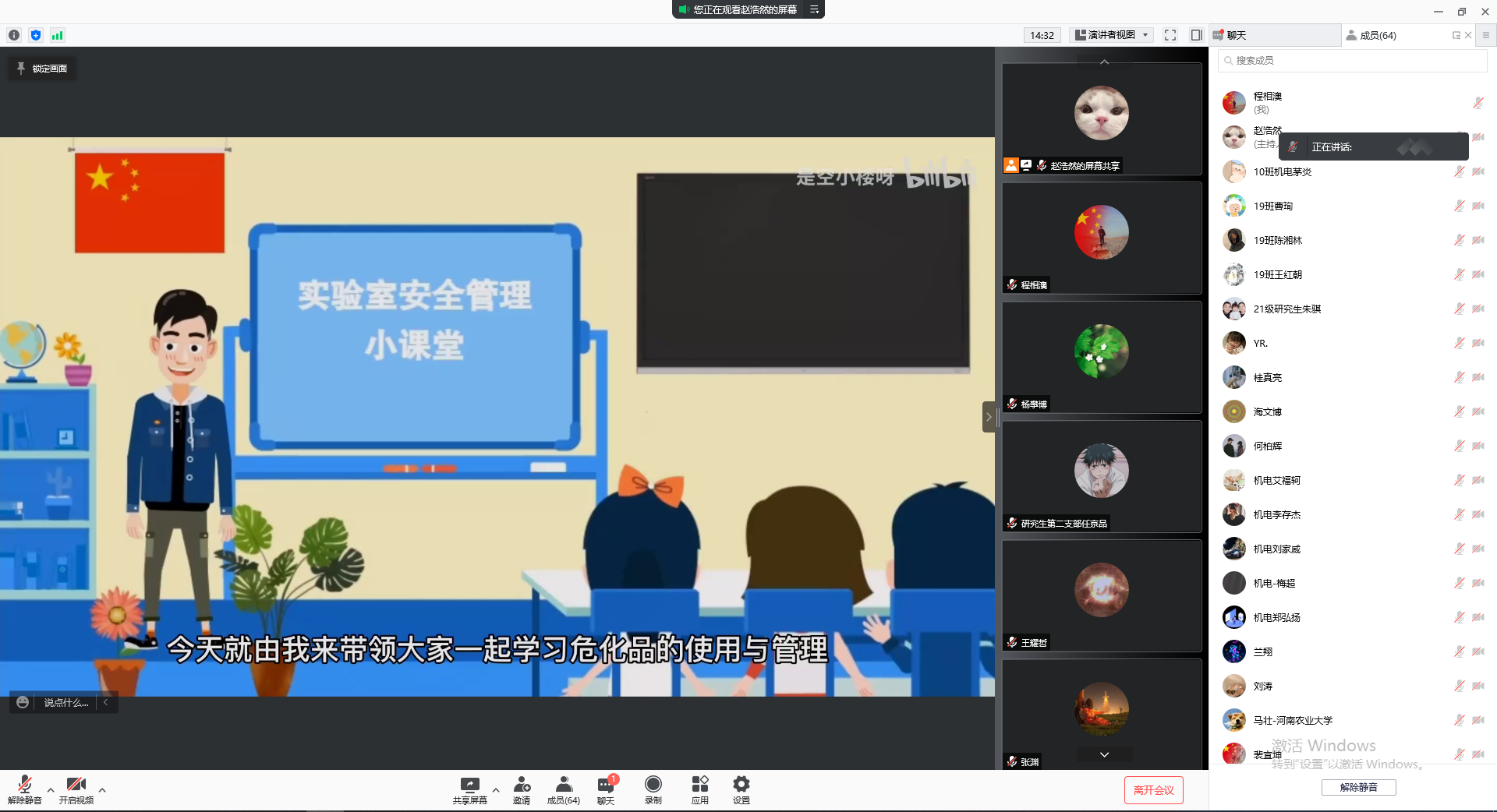 培训由实验室研究生学生会副主席赵浩然进行,赵浩然首先列举了近期发生的安全事件,引出实验室安全培训的重要性。接着又通过播放视频的方式对易燃物、腐蚀性物质、压缩气体等实验室常见危险化学品进行知识普及,同时也强调了实验室里的用电安全及实验设备的规范化操作。最后对学生日常做实验时的注意事项,对实验室常见、学生易犯的“误操作”、“不小心”、“安全检查不到位”等事故案例进行了分析,指出其中问题所在,再次提醒学生牢记并避免发生此等事故。
