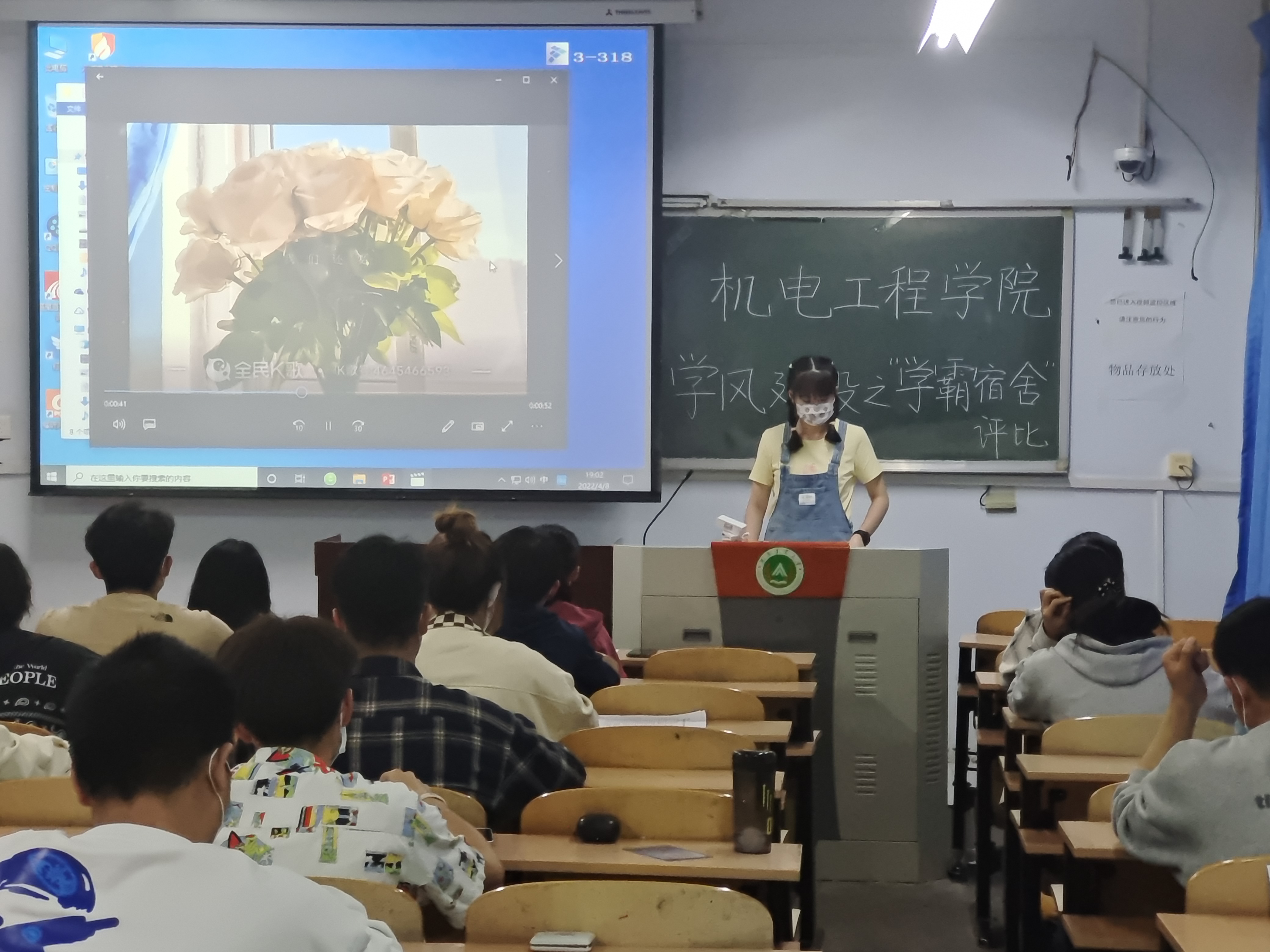 活动现场,参赛选手代表依次上台演讲。他们以PPT和短视频的形式,紧紧围绕班级所获荣誉情况、班级学风建设、宿舍成员成就及生活习惯培养等方面展开叙述。参赛代表们凭借着认真的态度、细致的描述、幽默的口吻生动展示了其独特的班级风采及宿舍文化,彰显出成人影院