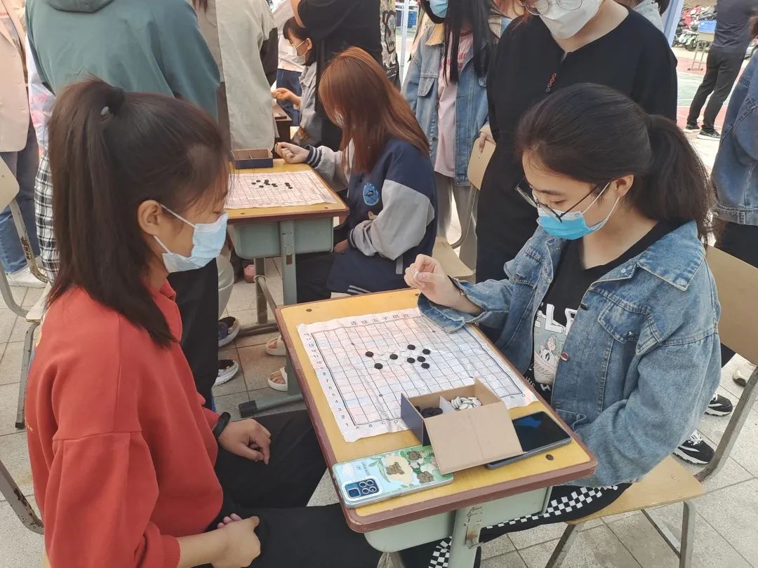活动伊始,校党委学工部副部长郭治鹏致辞。他对莅临现场的各位领导老师表示热烈欢迎,同时希望参赛选手们能够充分发扬竞争精神与体育精神,最大化发挥出自身实力。随着裁判宣布比赛规则后,比赛正式拉开序幕。活动现场气氛热烈,同学们依照防疫要求佩戴口罩,个个精神饱满、踌躇满志地到达指定地点进行比赛。五子棋组的参赛选手们手执棋子,时而冥思苦想、时而快速落子,在你来我往间碰撞出智慧的火花;跳绳组的参赛选手们手握绳把,挥动着双臂、跳跃着双脚,在空中舞出一道道优美的弧线。