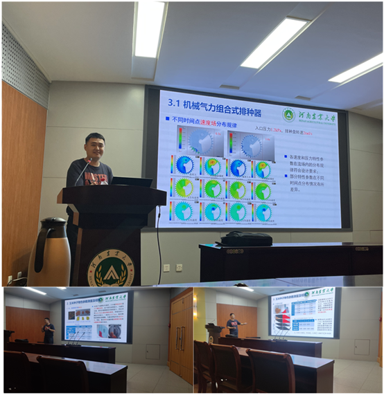 丁力博士以“DEM-CFD耦合在气力式精量排种机械领域应用”为主题,给大家详细介绍了离散元和流体力学在农业机械领域的应用。丁力博士从离散元颗粒建模讲起,深入分析了如何建立更为精确的颗粒体模型;在流体力学方面,讲到了如何画出高ji质量结构化网格,更多地提到建模的思想;随后还给大家分享了气固耦合的参数设置方法,让大家少走了很多弯路,用一张张动图让大家直观看到颗粒体气固耦合过程运动机理。最后,丁力博士还给大家分享了在中国农业大学读博期间的感想,尤其强调我们研究生要学会感恩,学会珍惜同学情谊等。