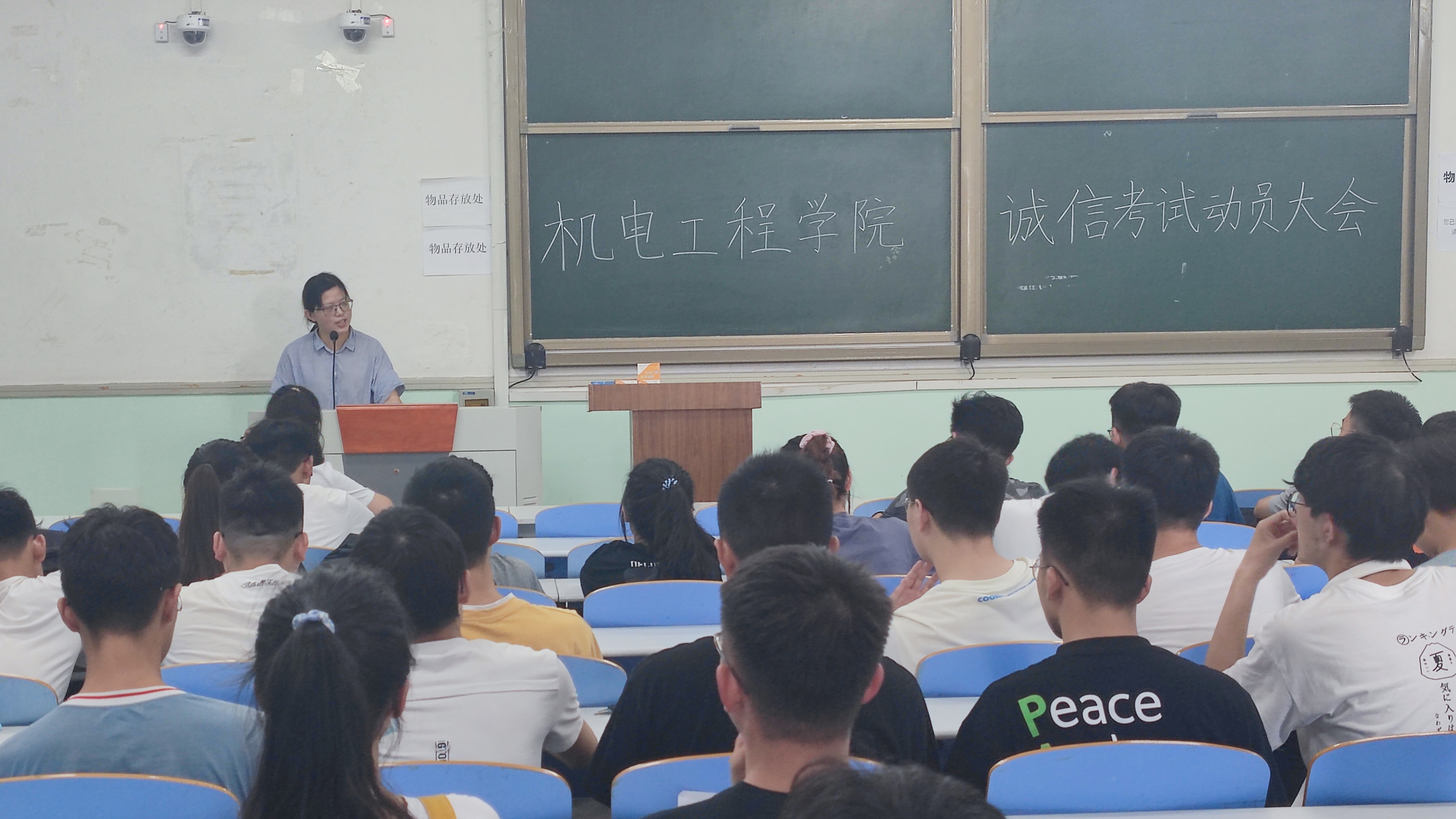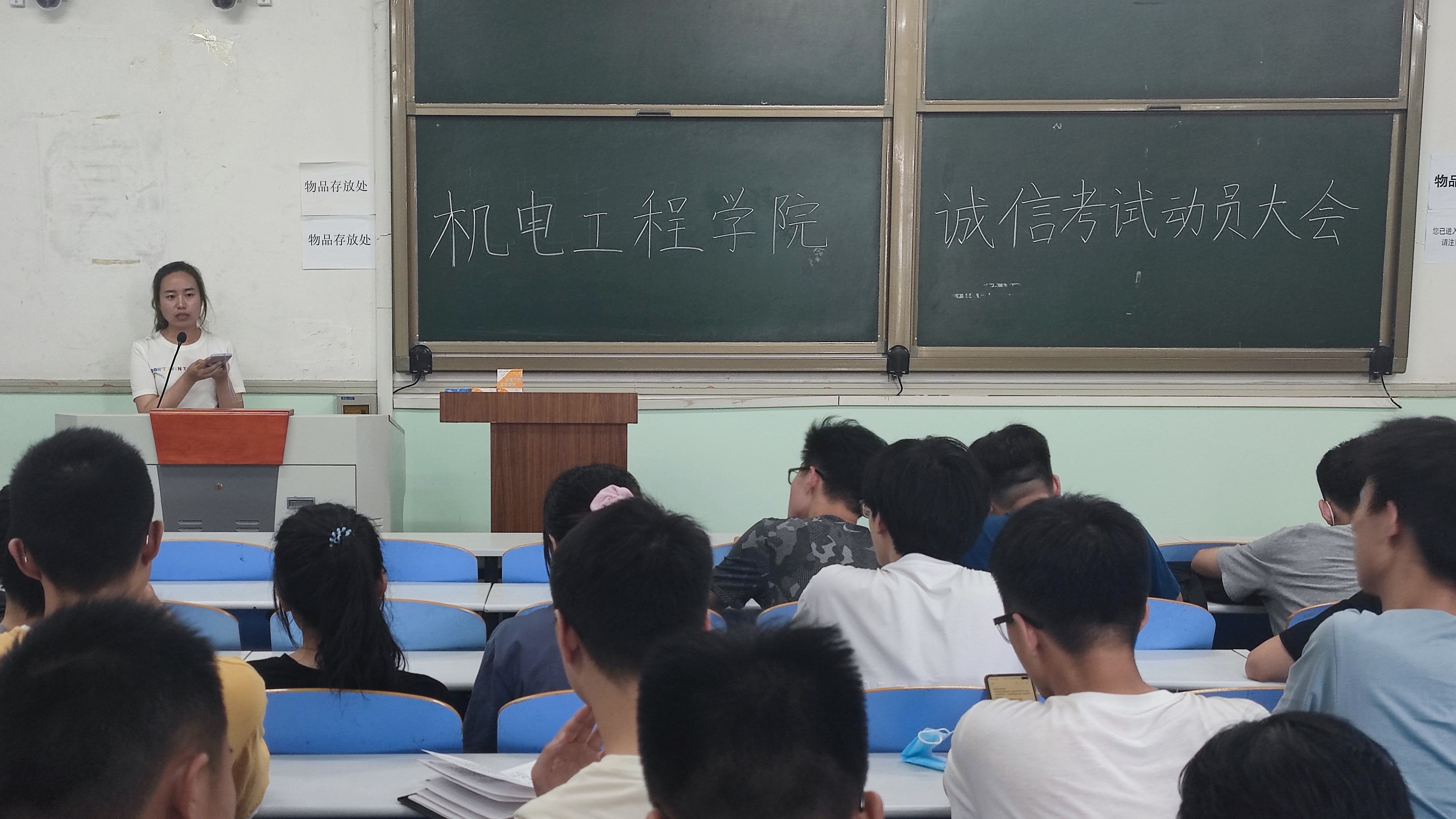 诚信考试动员大会。院团委书记黄笑、团委副书记徐捧丽、年级辅导员胡亭亭、王晓楠以及院学生组织主要成员、各年级班长支书参加会议。