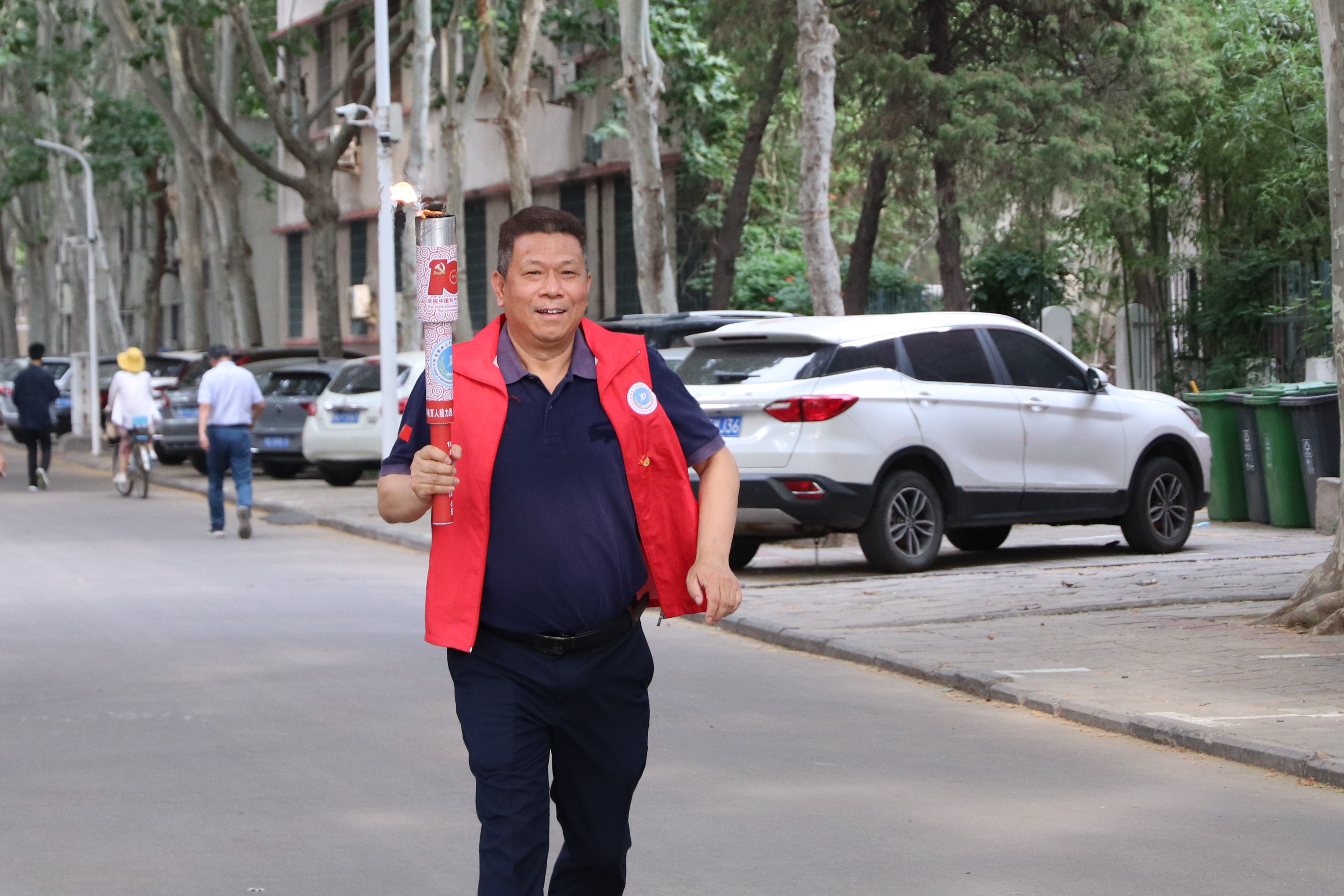 在简单的热身运动之后,校党委副书记、工会主席李成吾点燃第一棒火炬,正式开启了此次接力跑。活动过程中,师生们手持火炬,热情满溢,以奔跑之姿,展现师生风采,以青春之名,为建党百年献礼。手中的火炬一次又一次的传递,如同百年来为祖国和人民做出无私奉献的先辈英烈们的革命精神被一代又一代的接力传承下去。