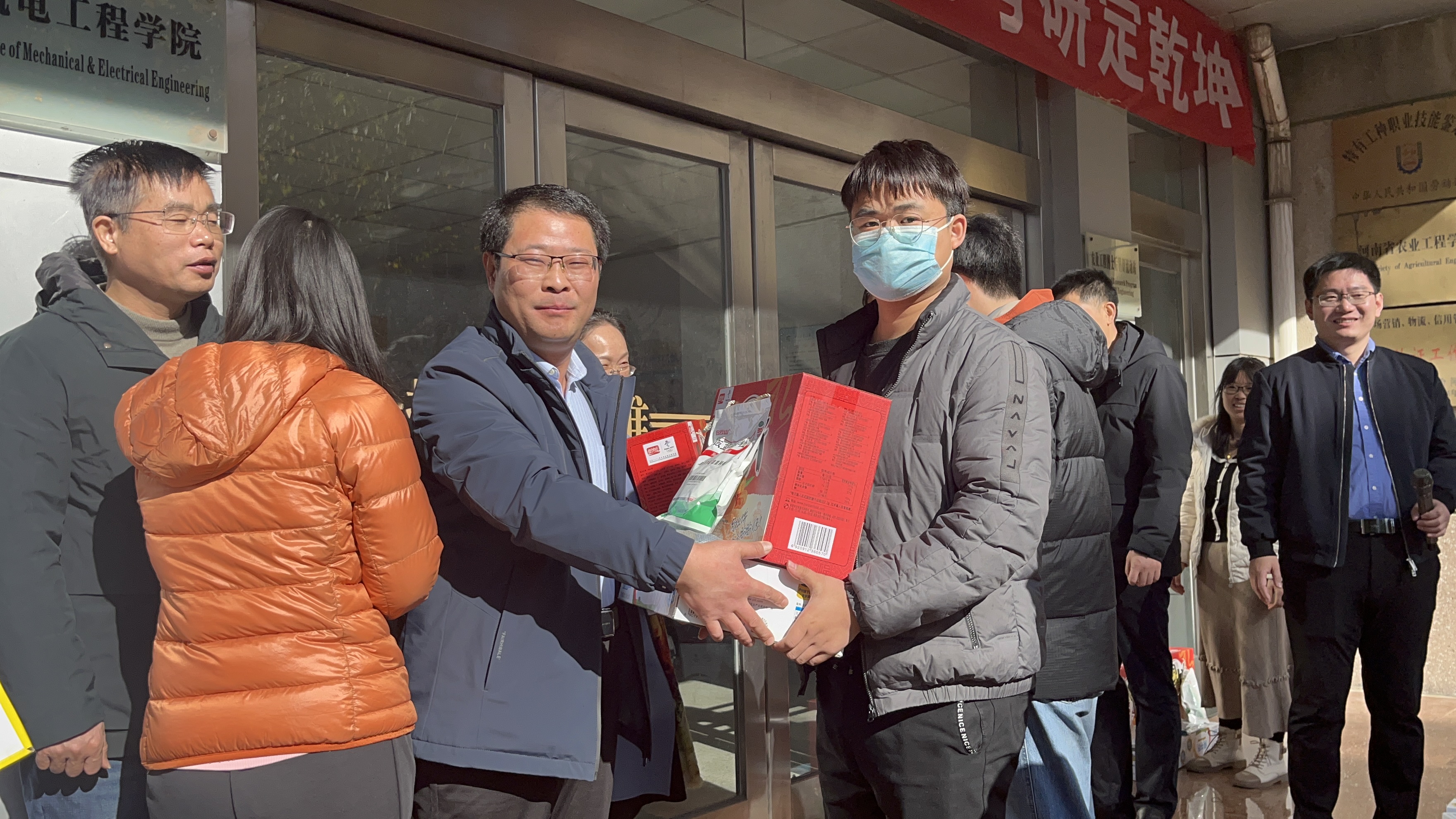 于文化路校区15号楼前开展“机电寒冬送温暖,提笔考研定乾坤”考研送温暖活动。学院领导班子、毕业班年级辅导员及各专业辅导员奔赴现场为考研学子发放爱心物品,成人影院