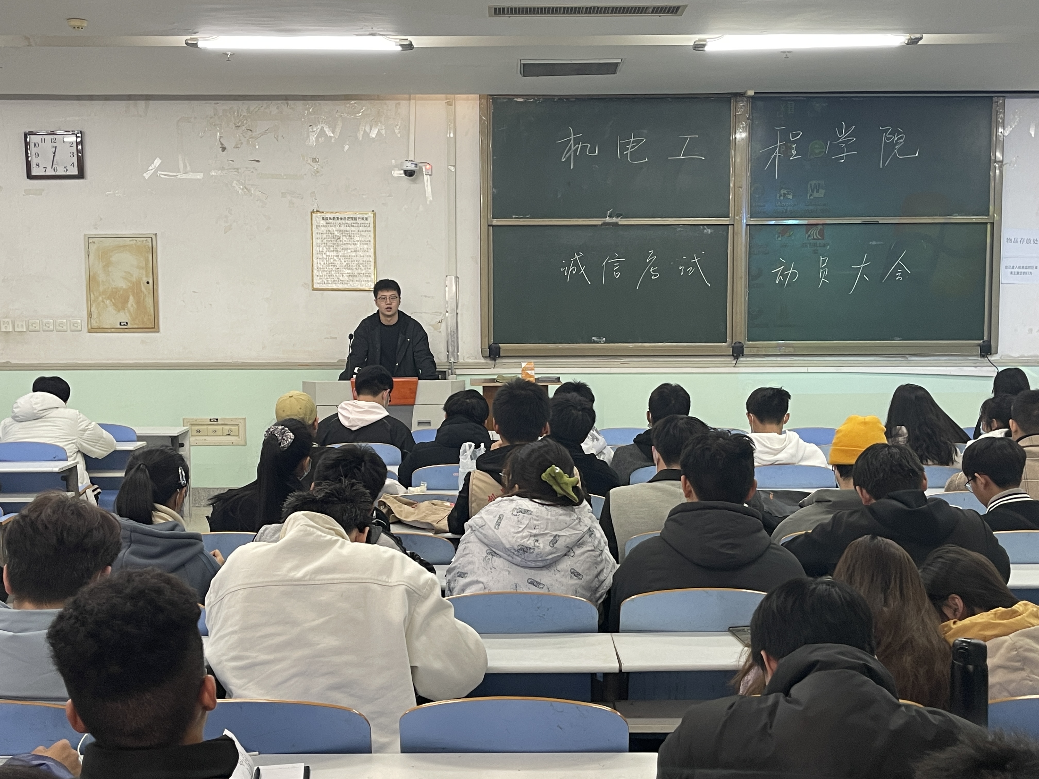 诚信考试动员大会,院团委书记黄笑,团委副书记徐捧丽出席本次会议,各年级班长支书及学生组织主要成员参加会议。