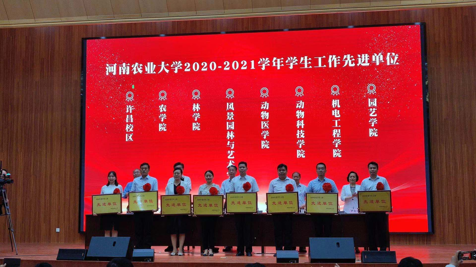 5月25日晚,我校“不忘初心百年路 铸魂育人新时代”2020-2021学年学生工作表彰大会在龙子湖校区召开,校党委书记魏蒙关、校长介晓磊、校党委副书记、工会主席李成吾、副校长尹新明、副校长林同保出席大会。学校相关部门负责人、全校政工干部、班主任代表、学生代表参加大会。