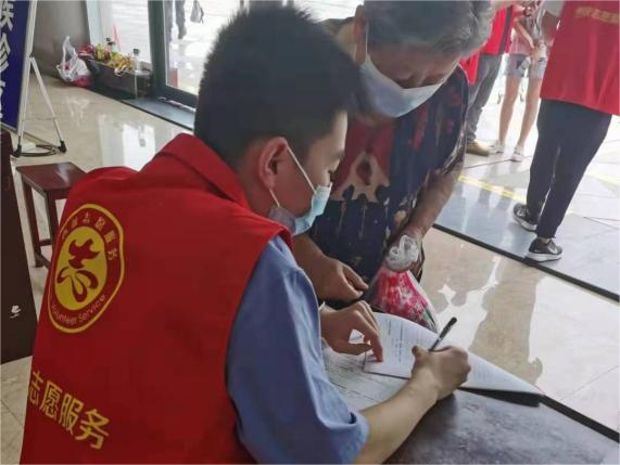 队员们集合完毕后,身穿志愿者服装并合理地分配了任务。队长裴云清负责进行对来往人员的信息登记,队员赵士皓以及黄菲负责维护现场秩序,并手持二维码方便人们进行扫码登记。短短的两天时间里,他们接触到了不同的人群,学习、收获到了宝贵的工作经验。相信在今后的学习生活中,他们定能以更饱满的热情参与到更多志愿活动当中。