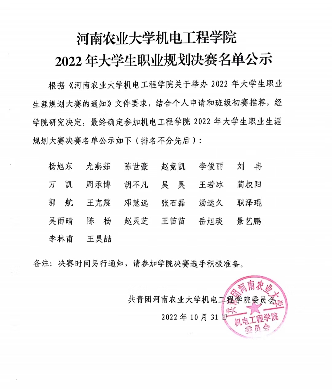 根据《成人影院 成人影院 关于举办 2022 年大学生职业生涯规划大赛的通知》文件要求,结合个人申请和班级初赛推荐,经学院研究决定,最终确定参加成人影院 2022 年大学生职业生涯规划大赛决赛名单公示如下(排名不分先后):