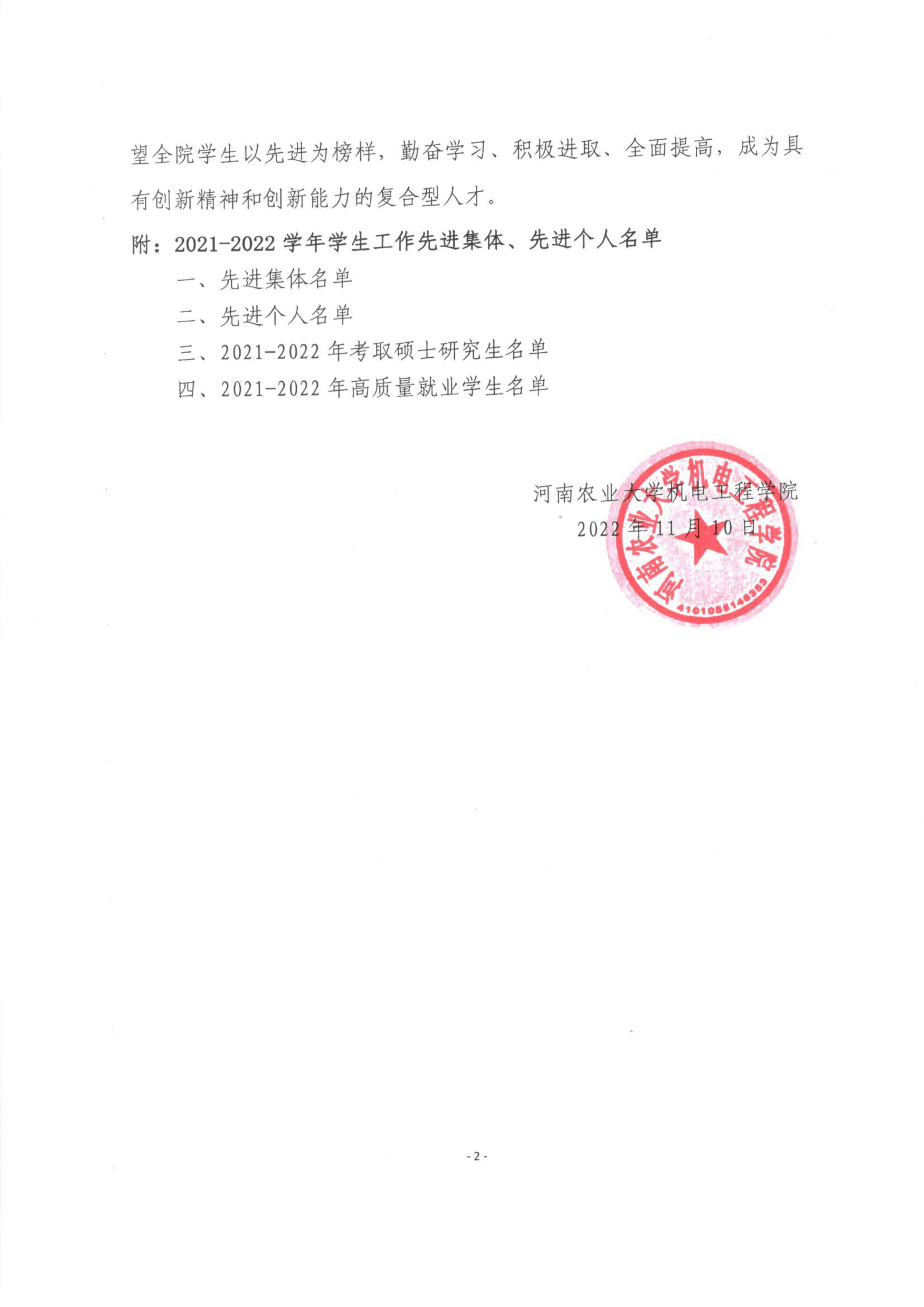 关于表彰2021-2022学年成人影院 先进集体和先进个人的决定