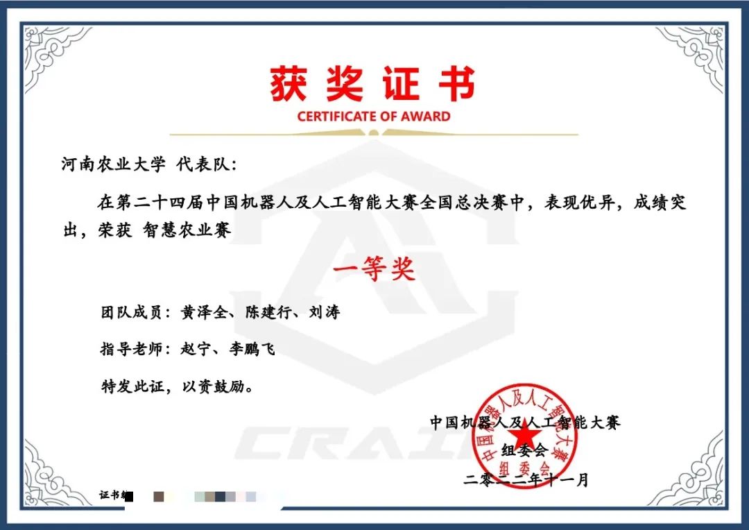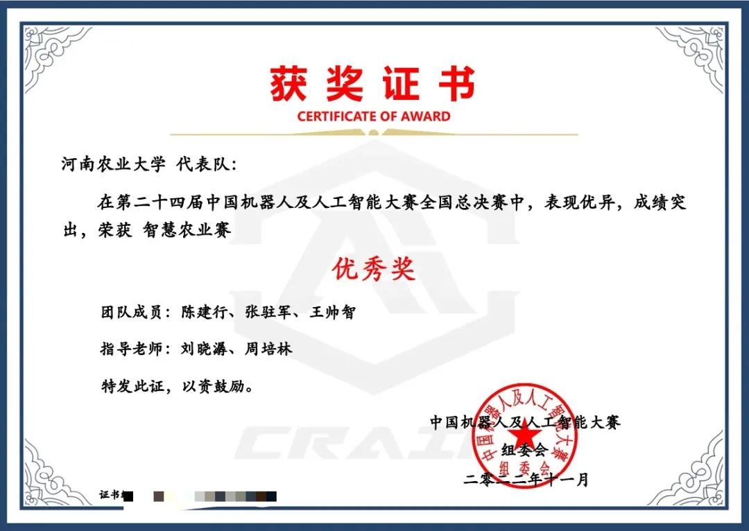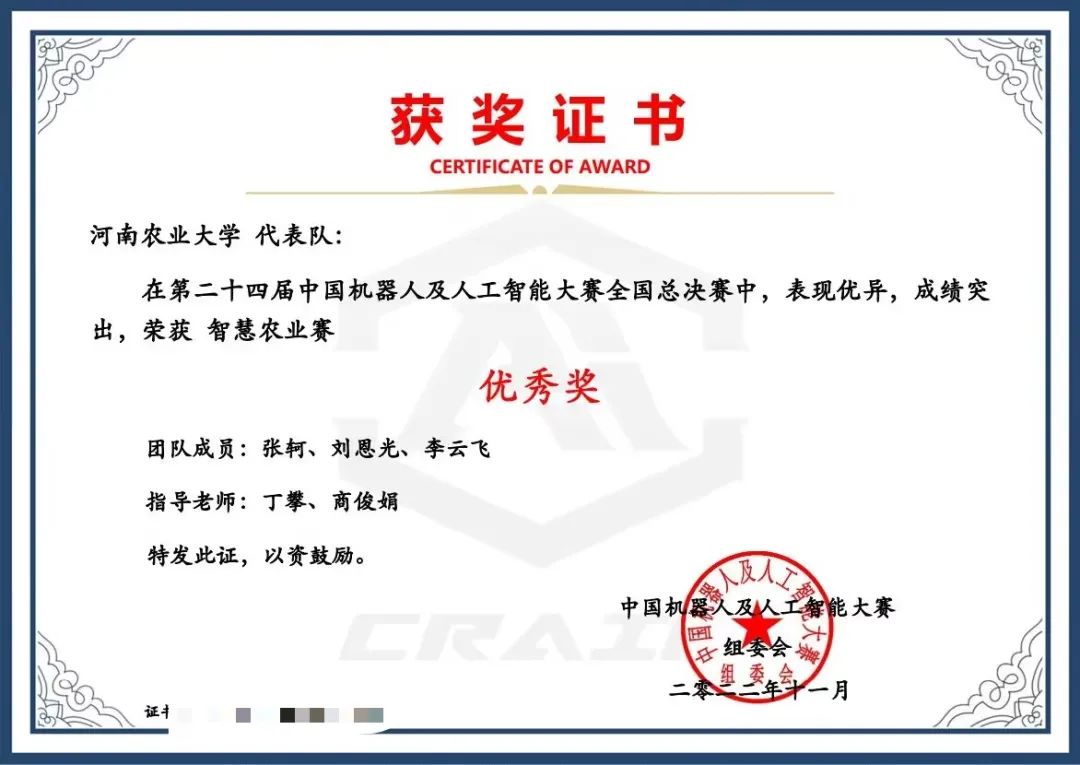 参赛队伍参与中国机器人及人工智能大赛以来,连续两年取得智慧农业所有参赛项目的国赛一等奖。