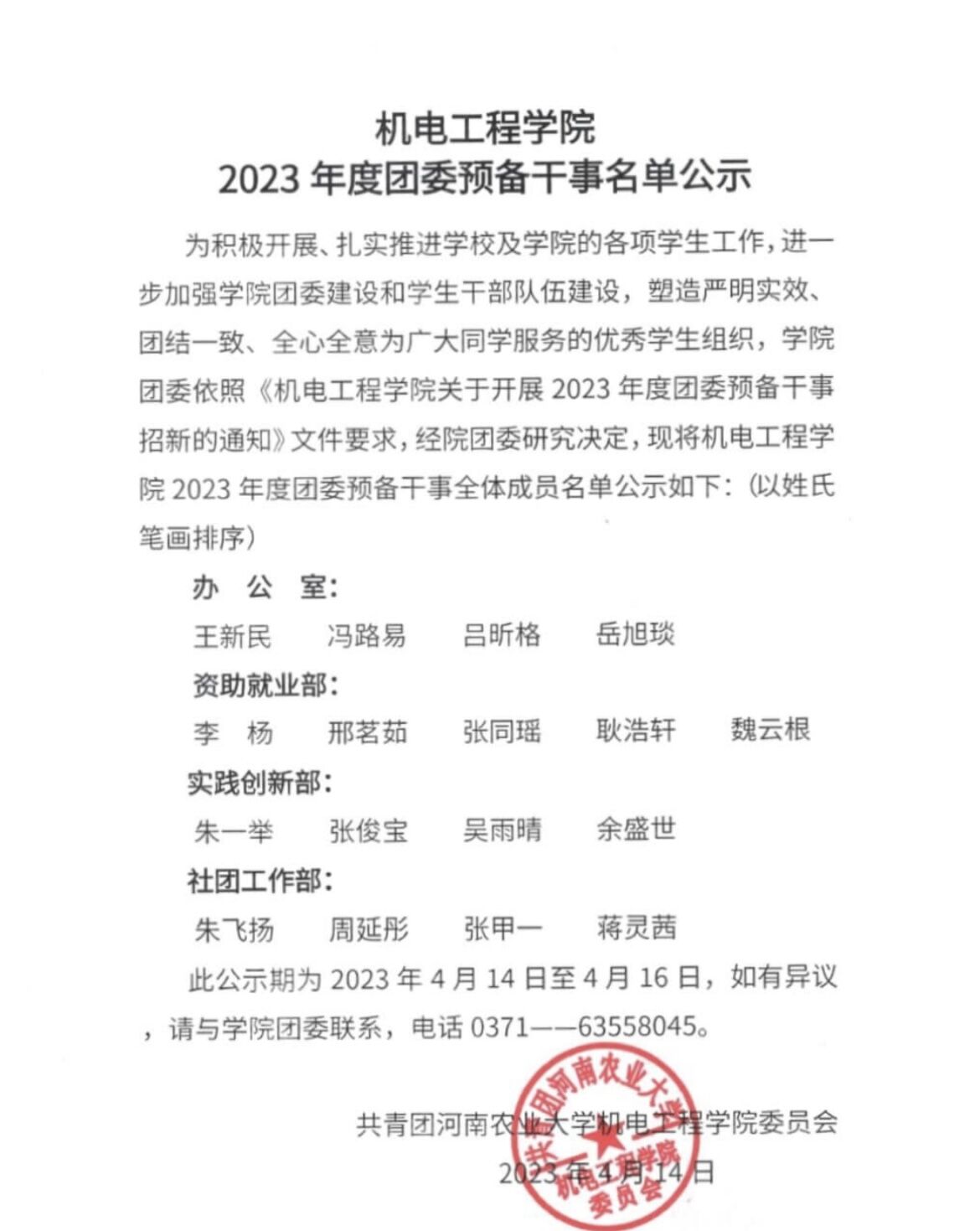 成人影院 2023年度团委预备干事名单公示